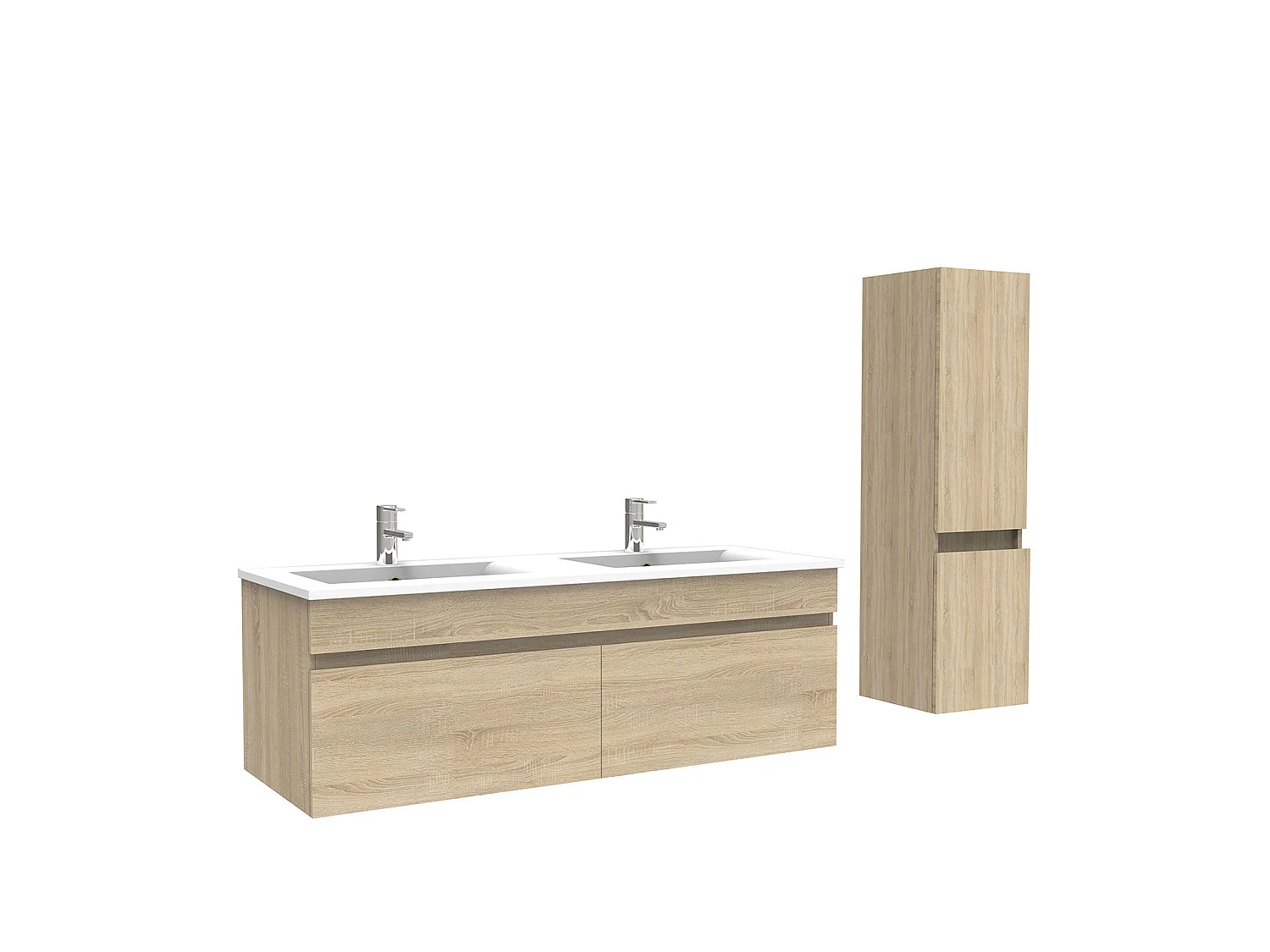 Meuble Salle de Bain avec colonne 120cm Chêne Wotan avec vasque ceramique, Aica