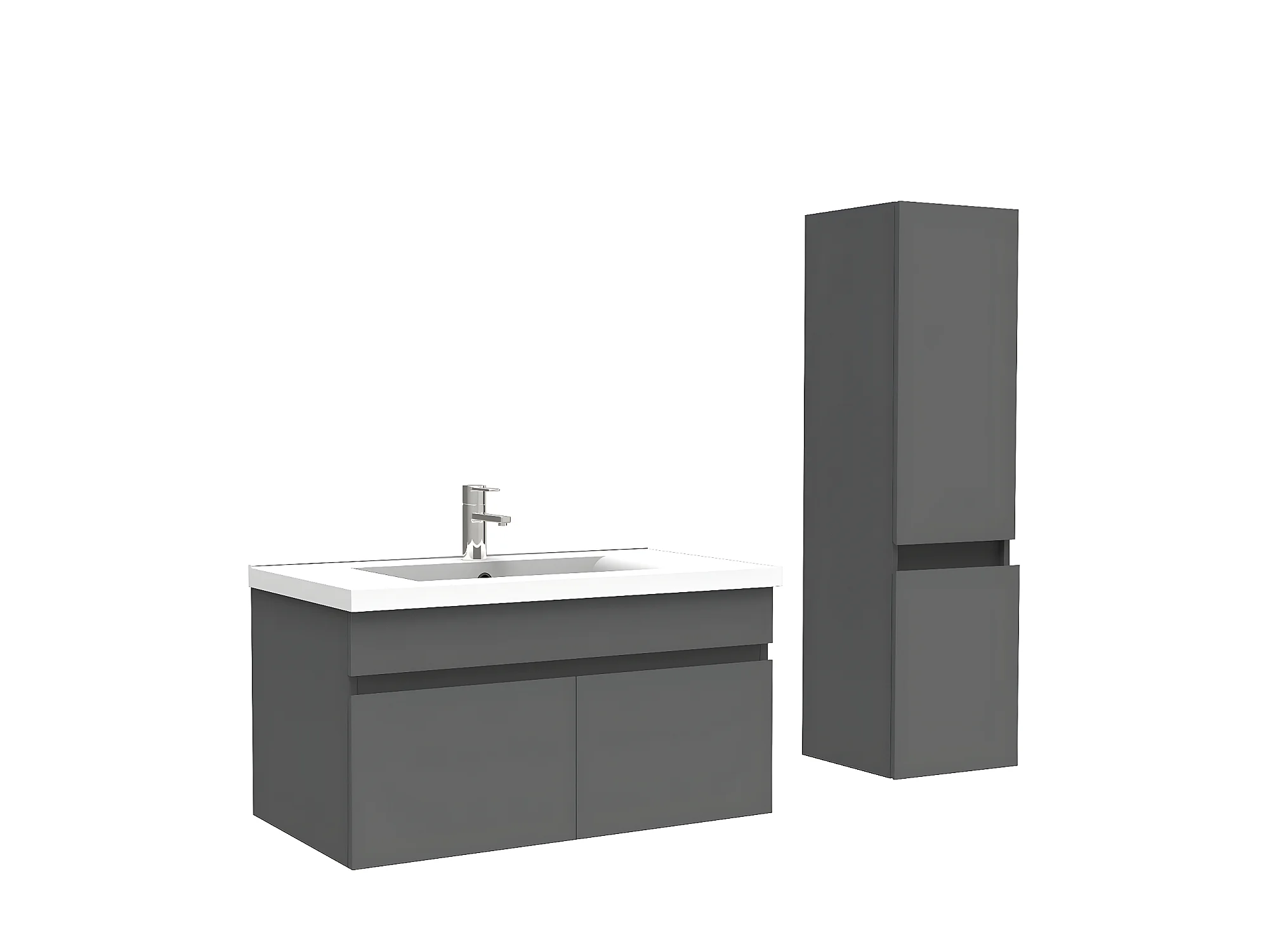 Meuble Salle de Bain avec colonne 80cm Anthracite avec vasque ceramique, Aica