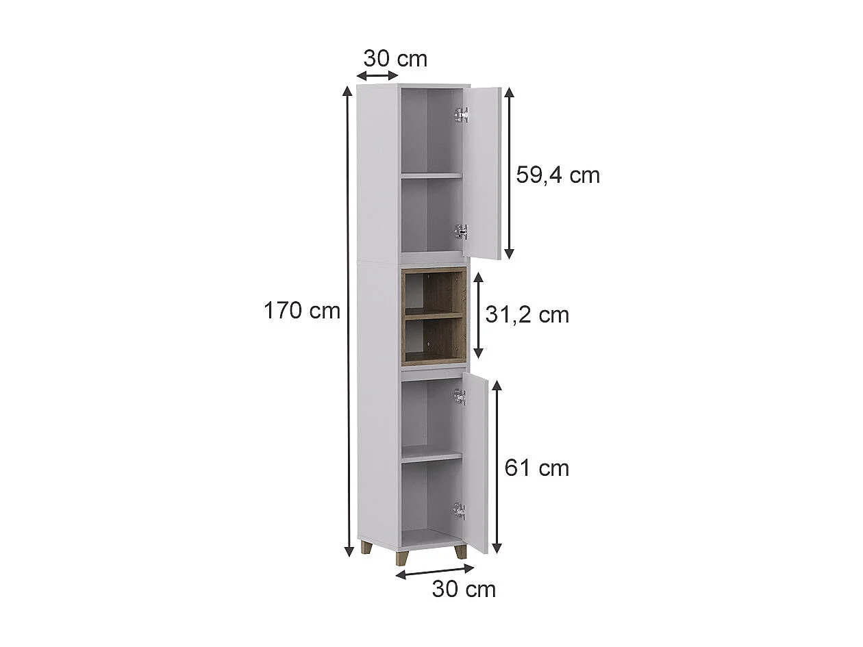 Meuble salle de bain blanc/chêne 30x30x170 elnor