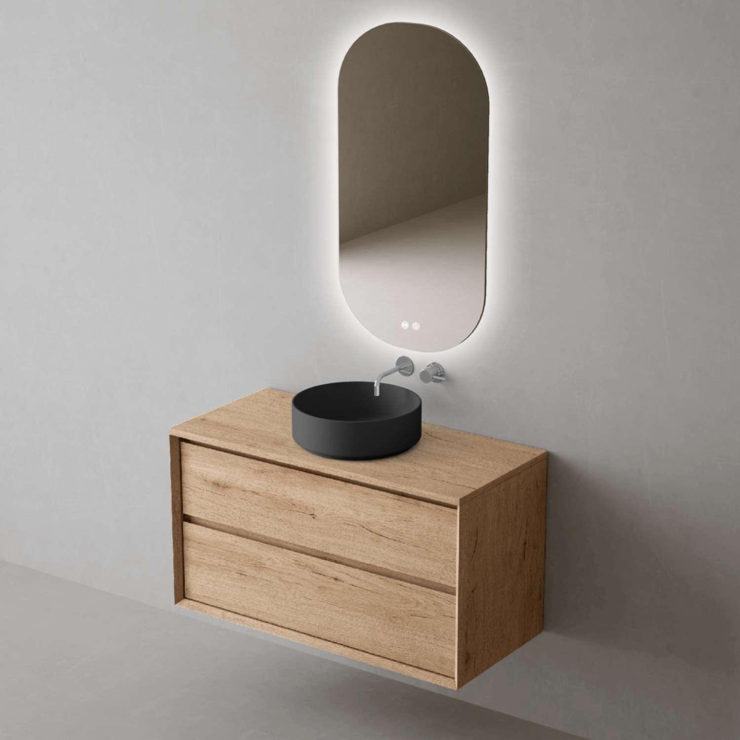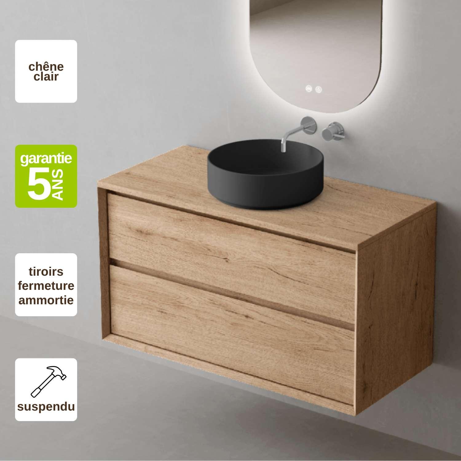 Meuble Salle de Bain COOL (61 cm x H54 x P45 cm), Plan Vasque Marin ROLL NM, 2 Tiroirs, Chêne Naturel