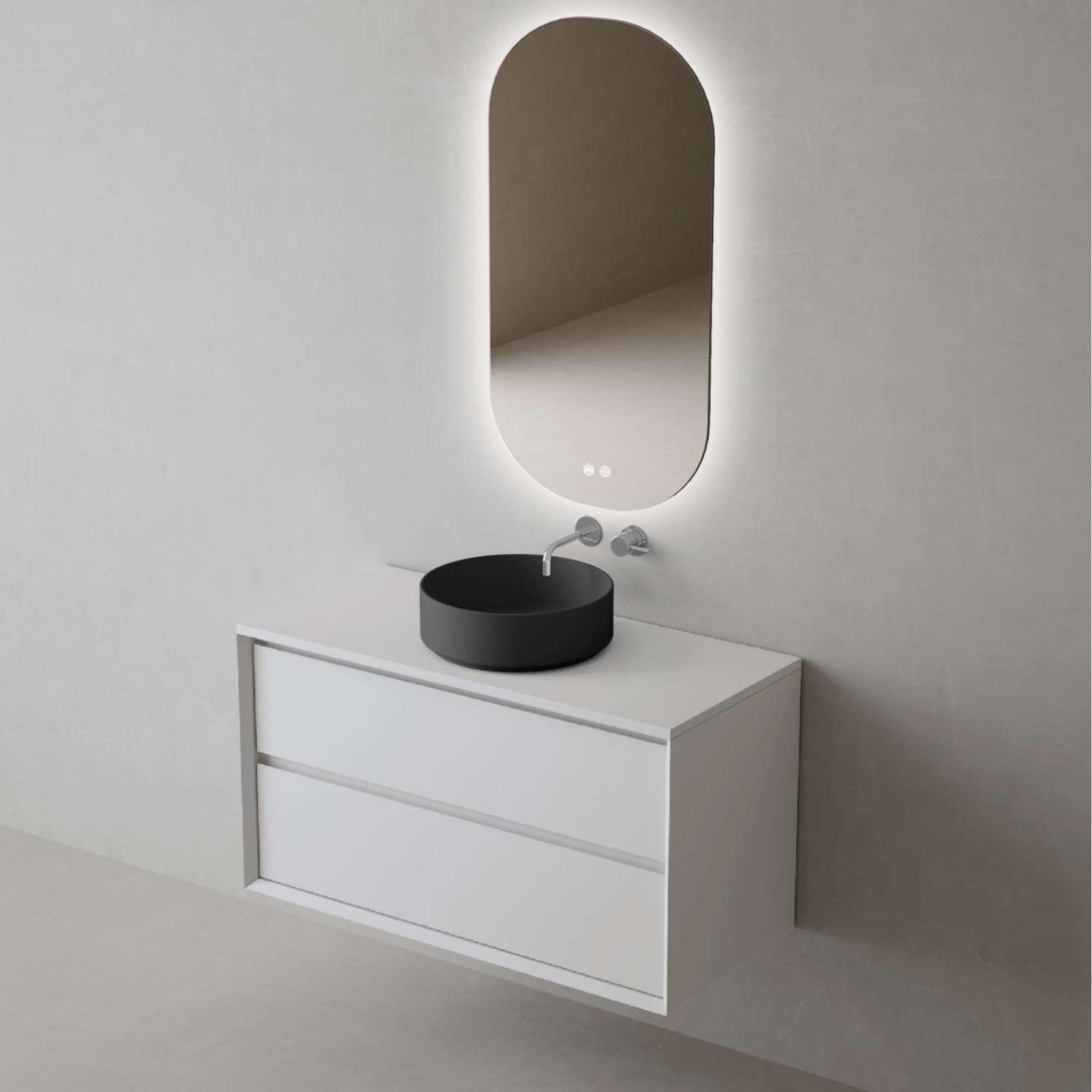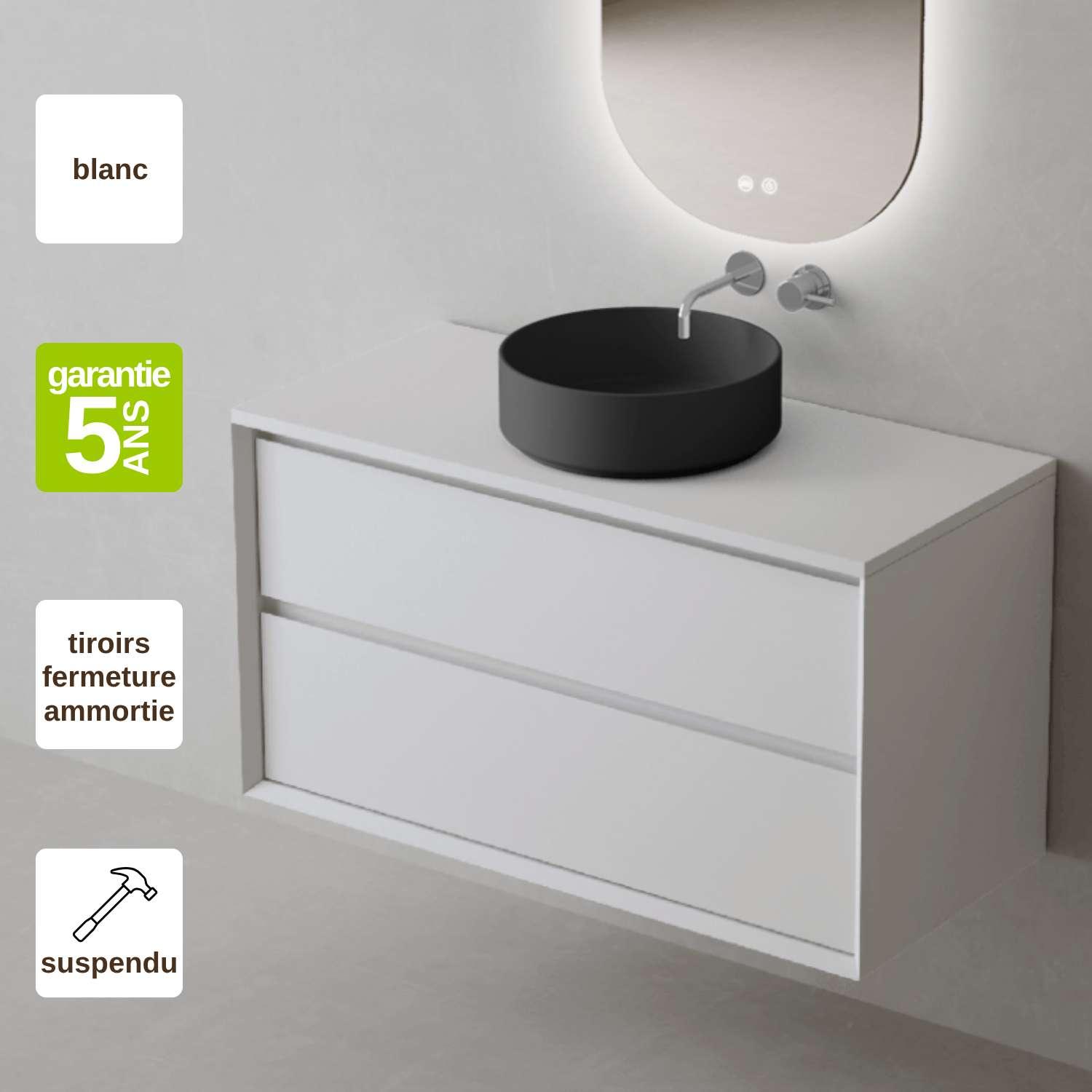 Meuble Salle de Bain COOL (61 cm x H54 x P45 cm), Plan Vasque Marin ROLL NM, 2 Tiroirs, Laqué Blanc Mat/Noyer