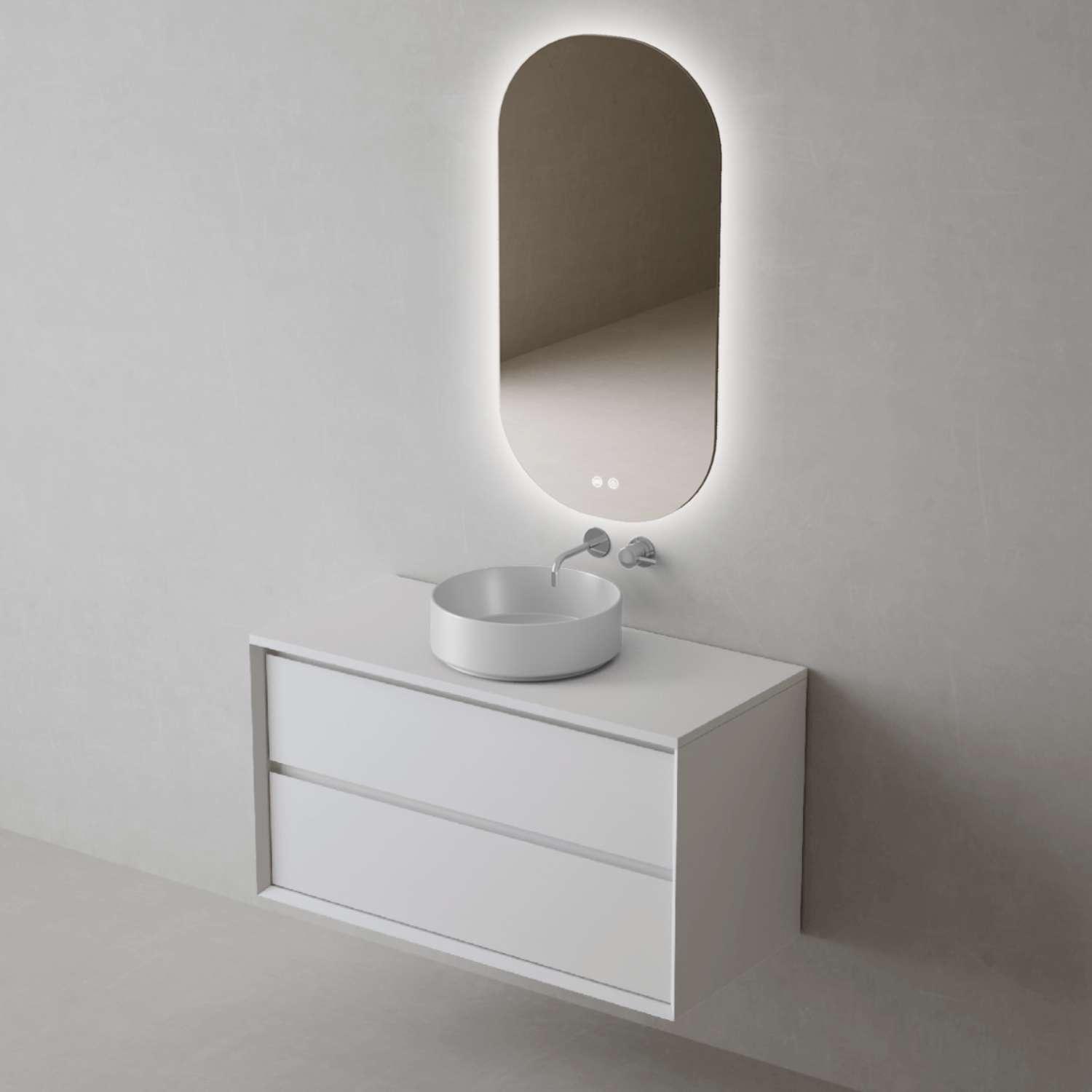 Meuble Salle de Bain COOL (61 cm x H54 x P45 cm), Plan Vasque Marin ROLL WB, 2 Tiroirs, Laqué Blanc Mat/Noyer