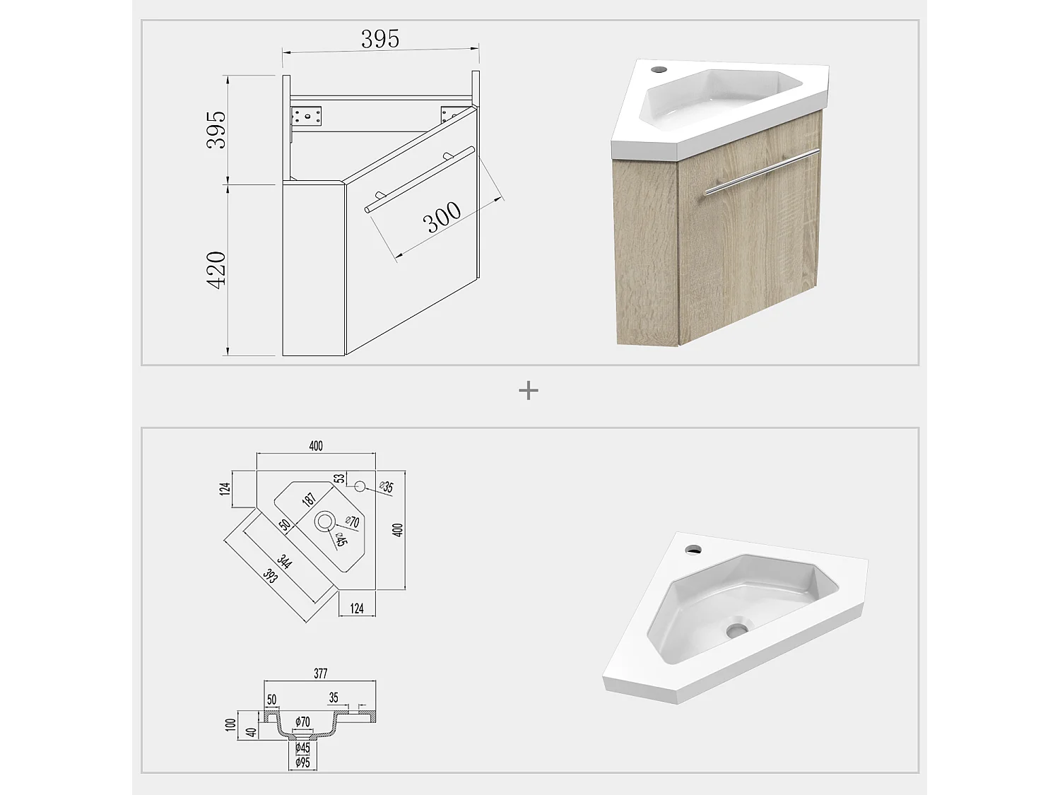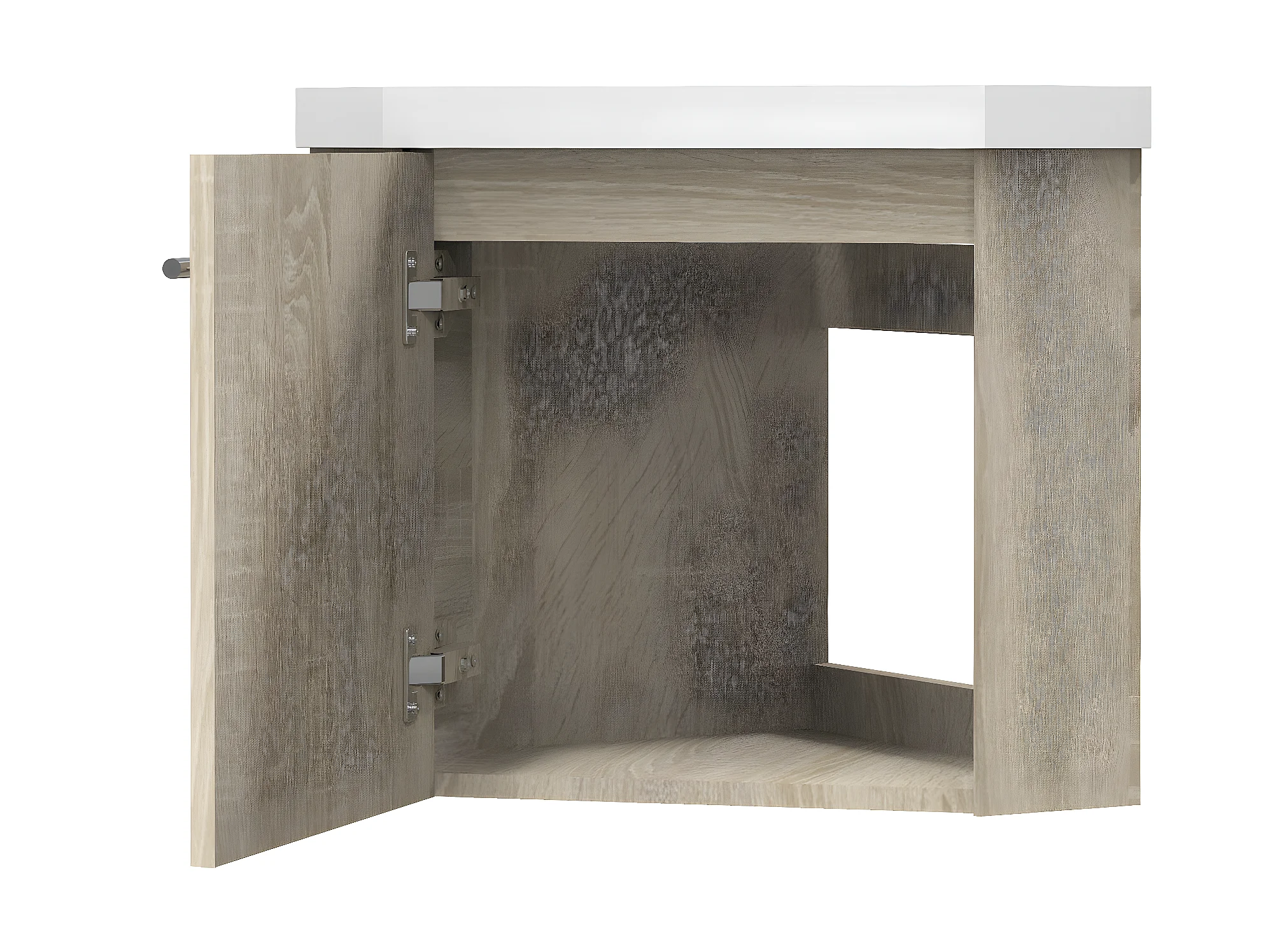 Meuble salle de bain d'angle 39.5x39.5x42cm 1 porte meuble suspendu avec la vasque bois