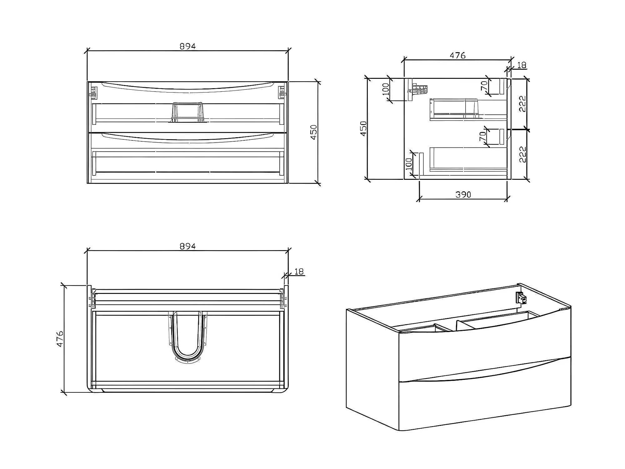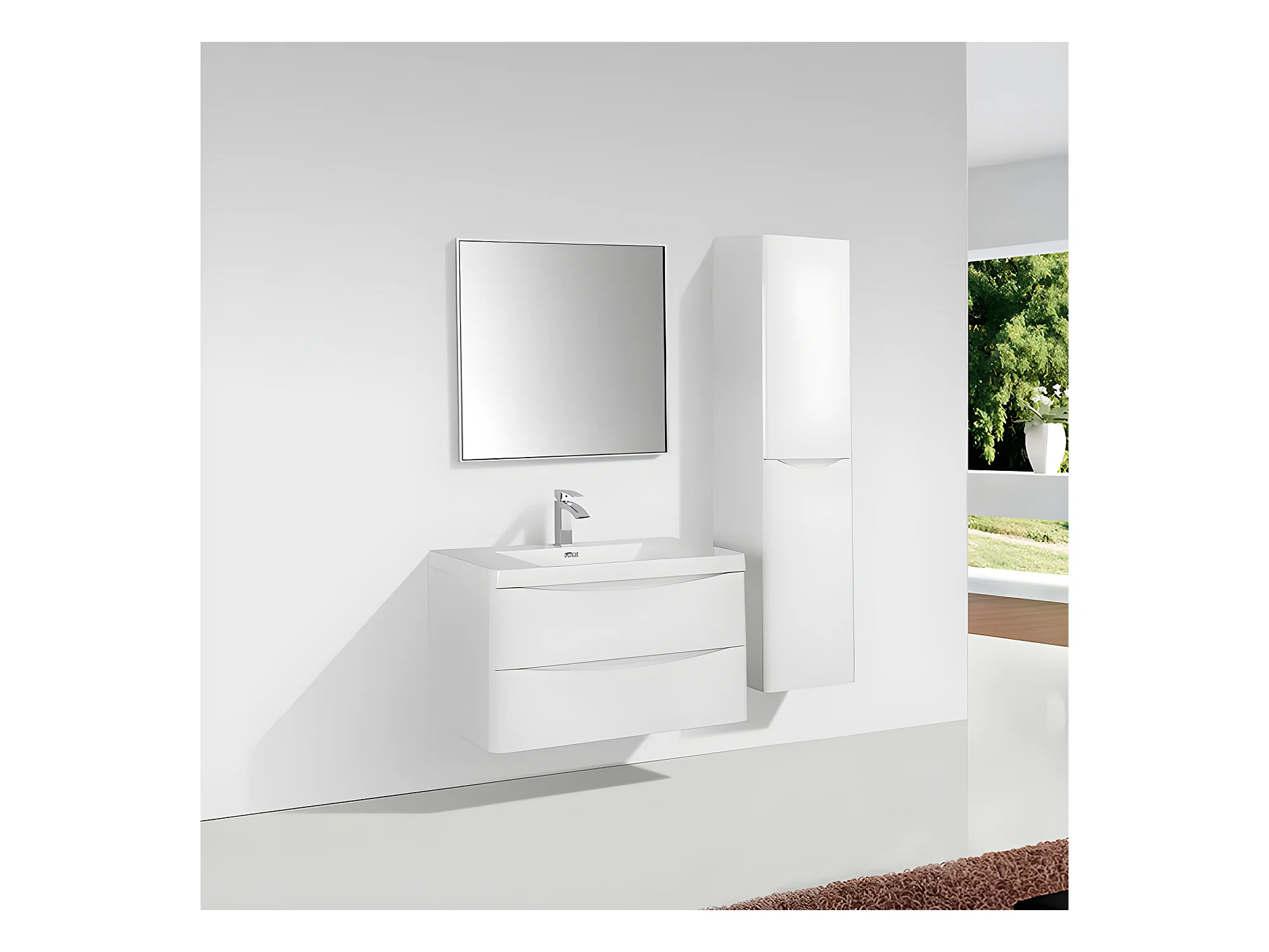 Meuble salle de bain design simple vasque PIACENZA largeur 90 cm blanc laqué