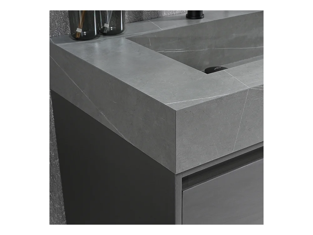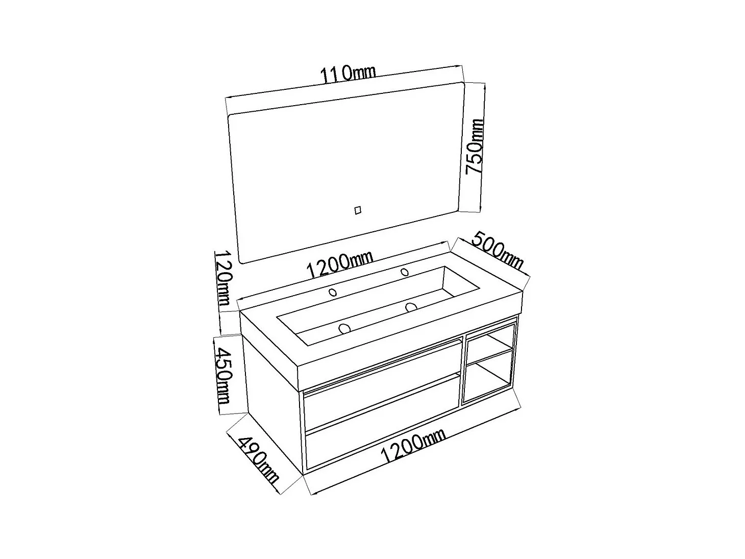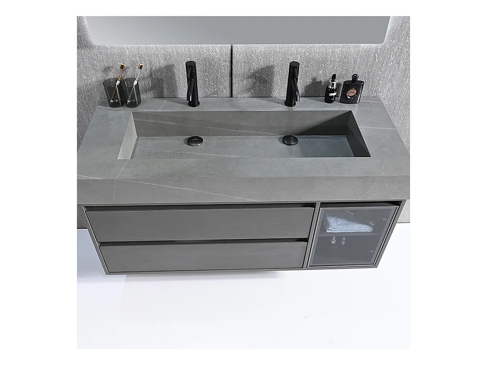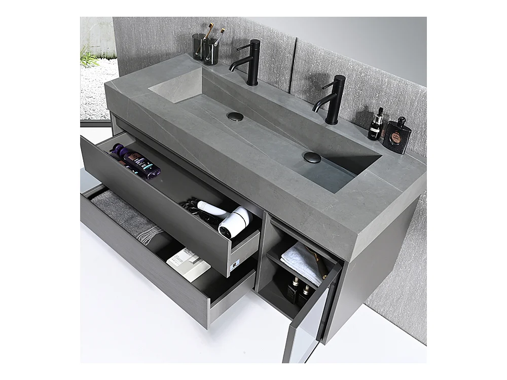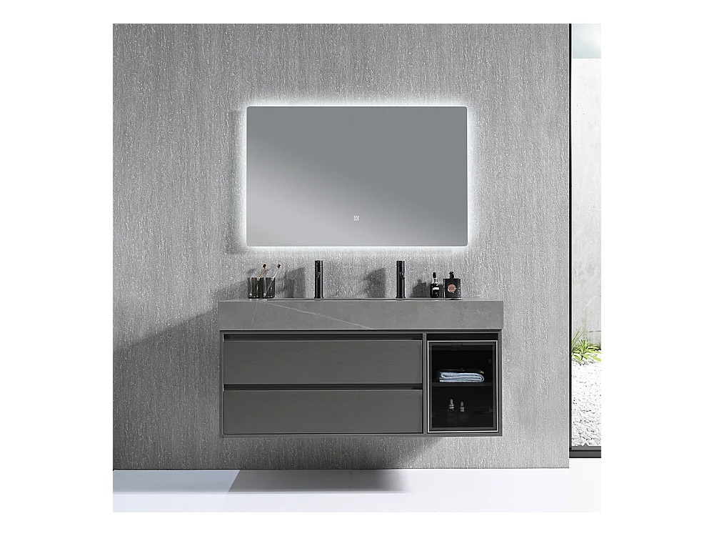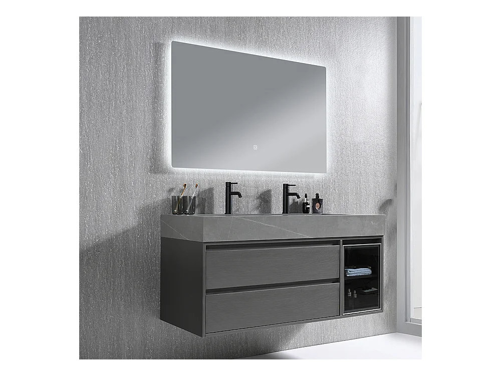 Meuble salle de bain double vasque 120cm gris et effet marbre gris avec miroir LED LB-8512G-120