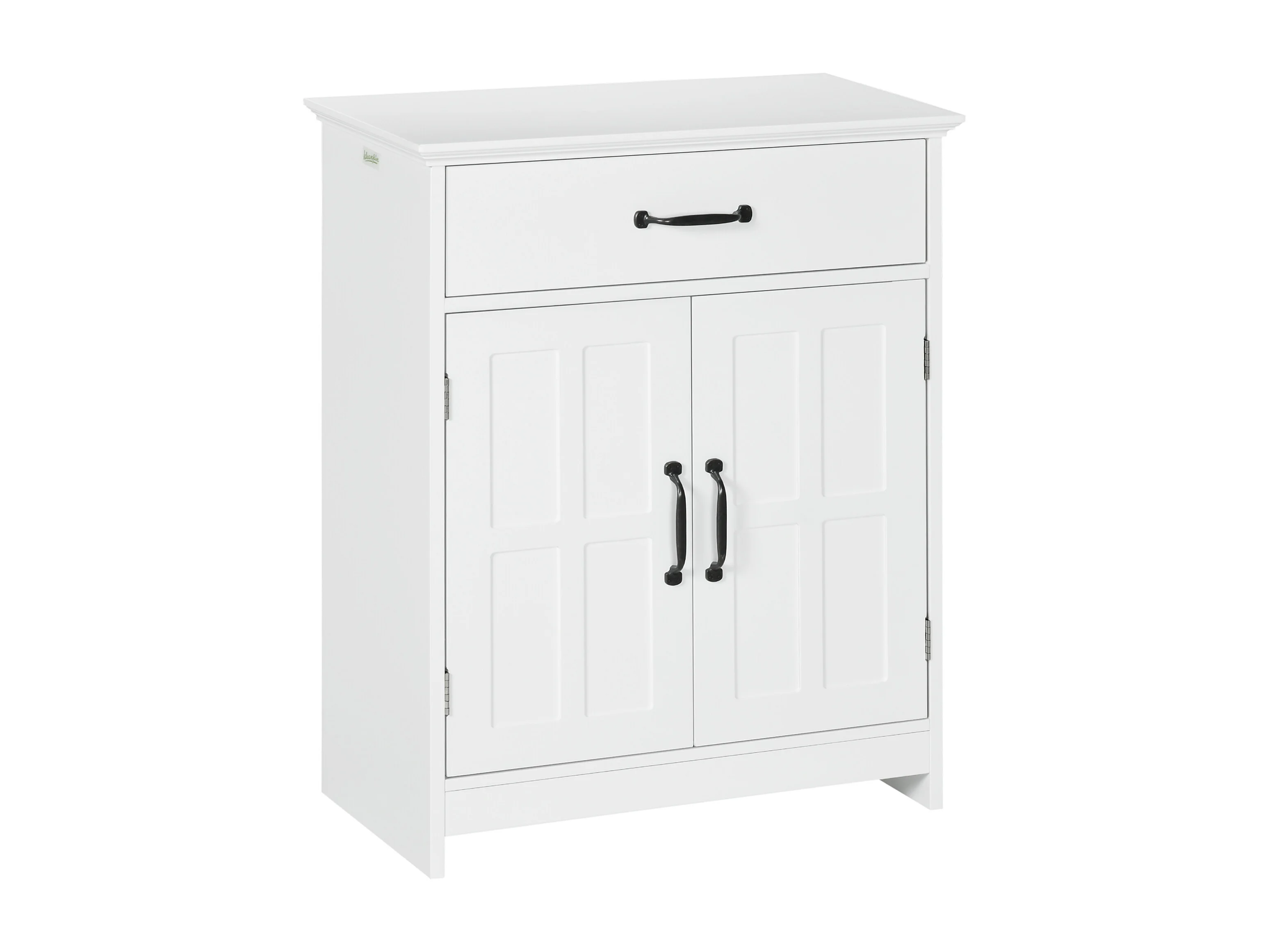 Meuble de Salle de Bain HOMCOM Blanc avec 4 Tiroirs et Placard - Style Ferme et Élégant