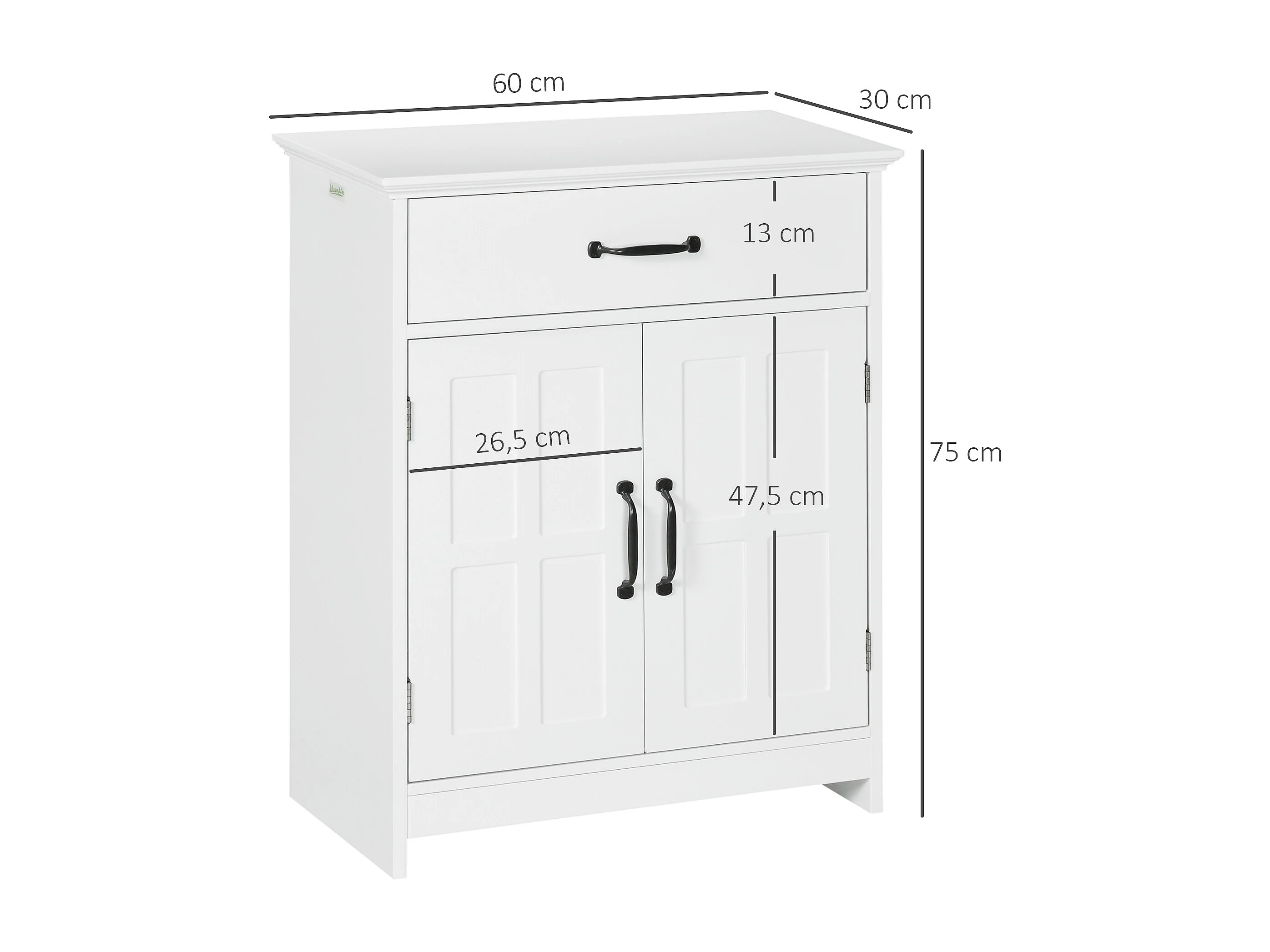 Meuble bas salle de bain style classique chic 2 portes 2 étagères tiroir blanc