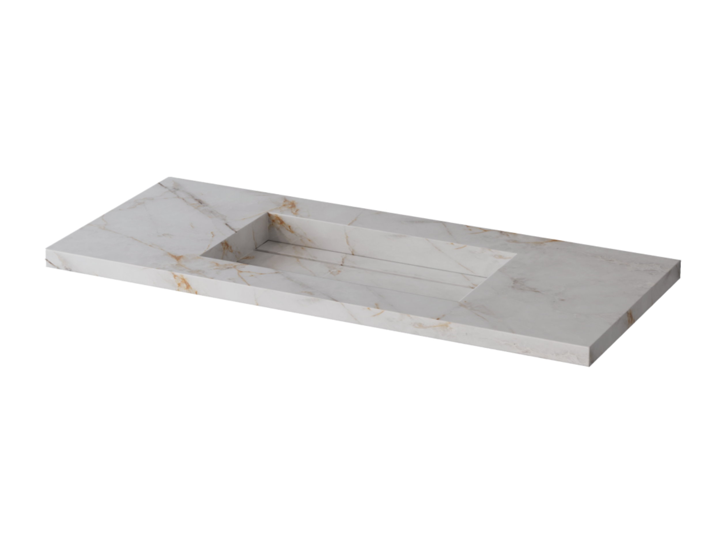 Meuble Salle de Bain POLE (101 cm x H54 x P45 cm), Plan Grès Cérame BS, 2 Tiroirs, Laqué Blanc Mat