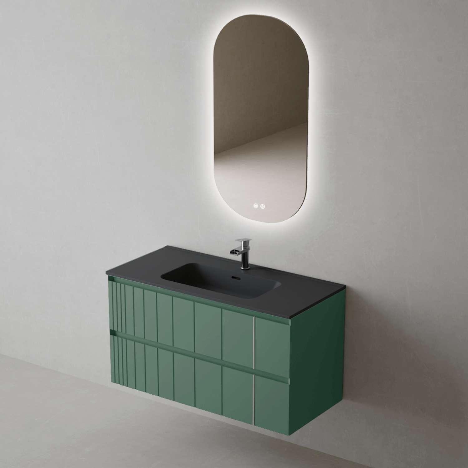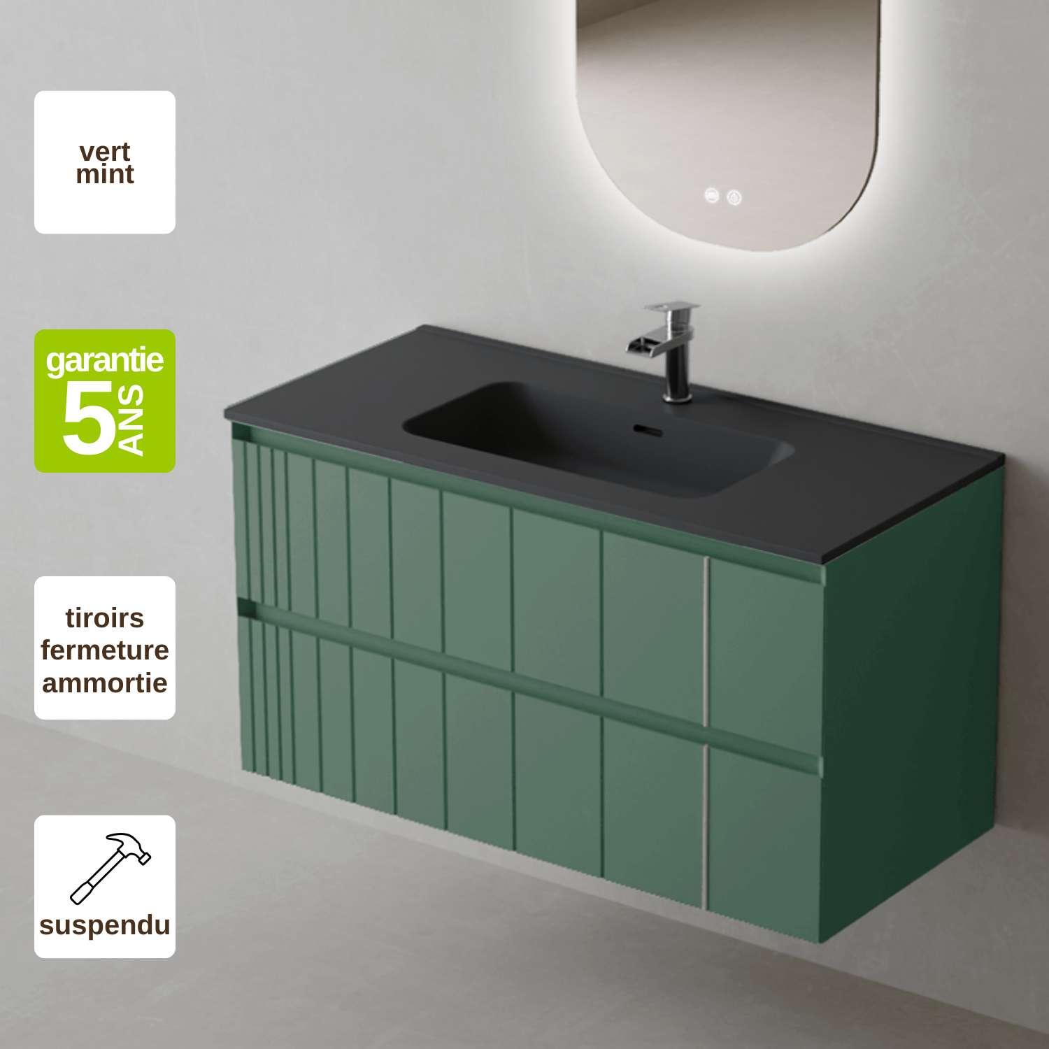 Meuble Salle de Bain POLE (101 cm x H54 x P45 cm), Plan Vasque Céramique NM, 2 Tiroirs, Laqué Vert Mint