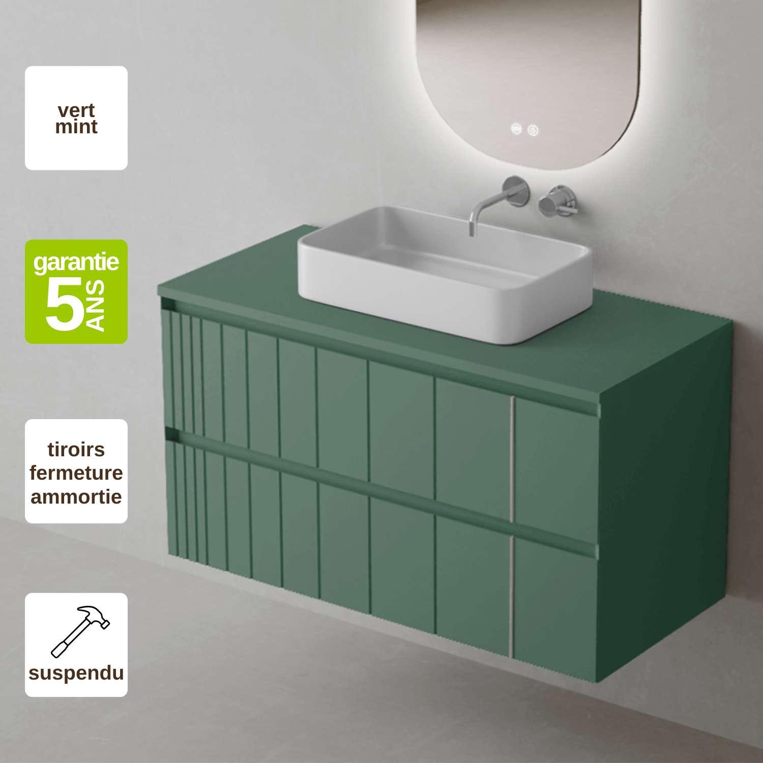Meuble Salle de Bain POLE (101 cm x H54 x P45 cm), Plan Vasque Marin TAN WB, 2 Tiroirs, Laqué Vert Mint
