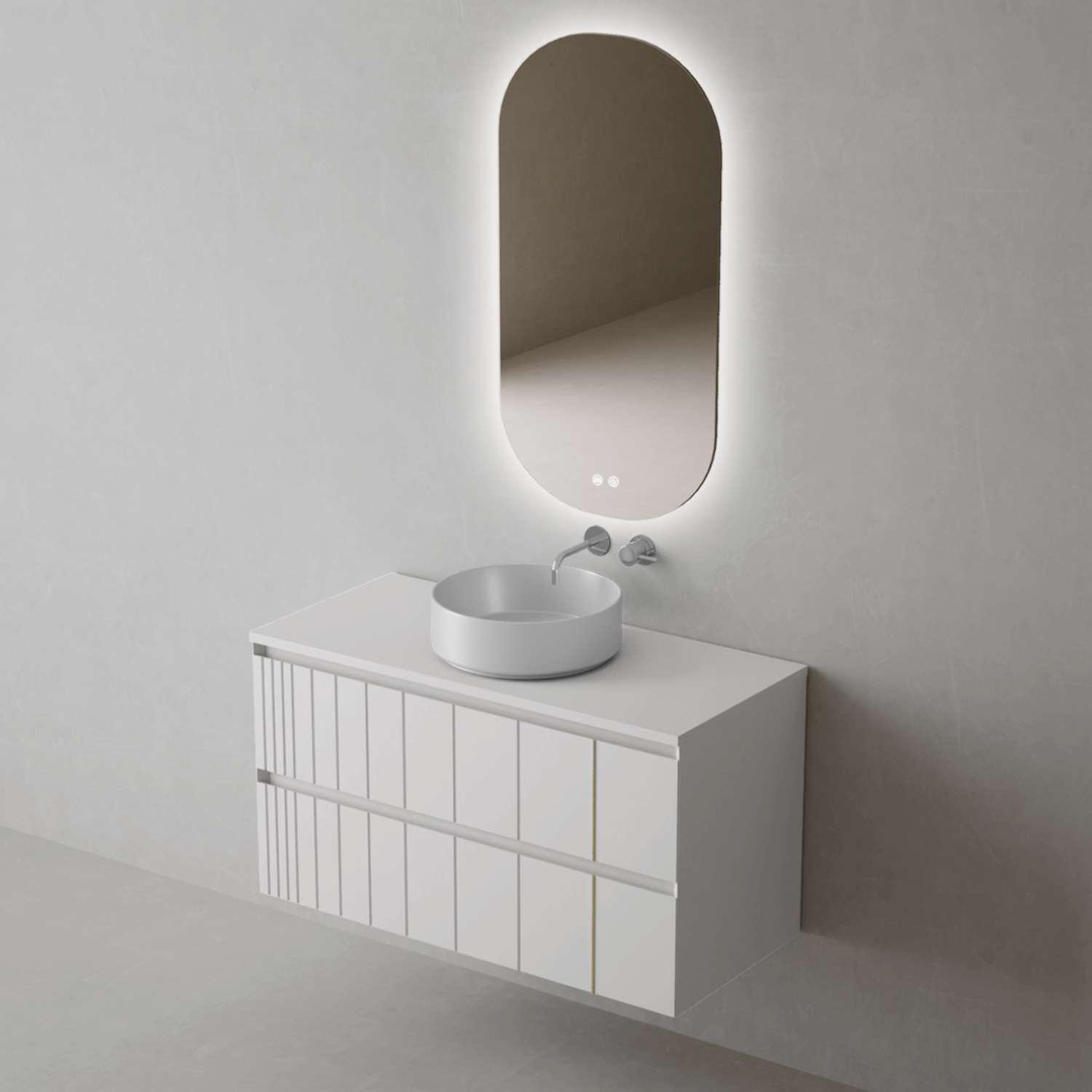 Meuble Salle de Bain POLE (61 cm x H54 x P45 cm), Plan Vasque Marin ROLL W.Brillant, 2 Tiroirs, Laqué Blanc Mat