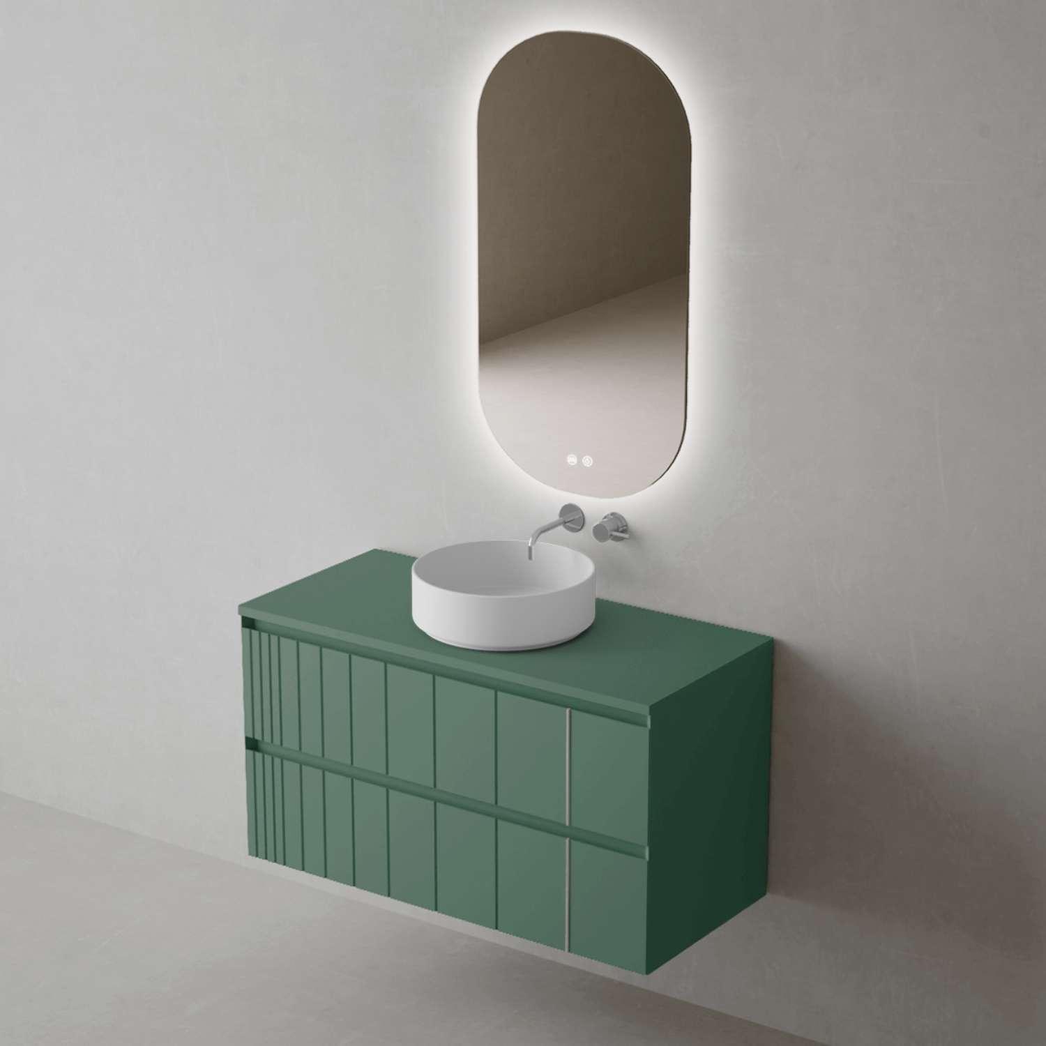 Meuble Salle de Bain POLE (61 cm x H54 x P45 cm), Plan Vasque Marin ROLL W.Brillant, 2 Tiroirs, Laqué Vert Mint