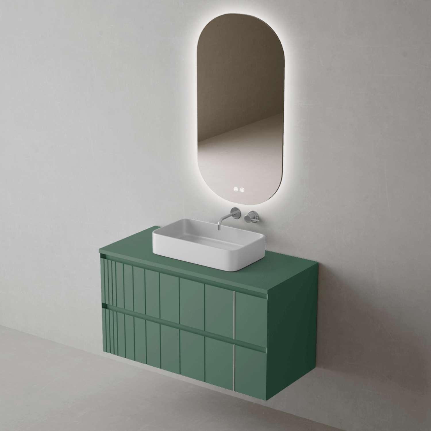 Meuble Salle de Bain POLE (61 cm x H54 x P45 cm), Plan Vasque Marin TAN WB, 2 Tiroirs, Laqué Vert Mint