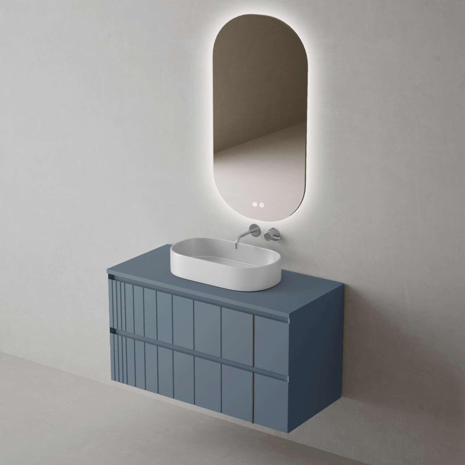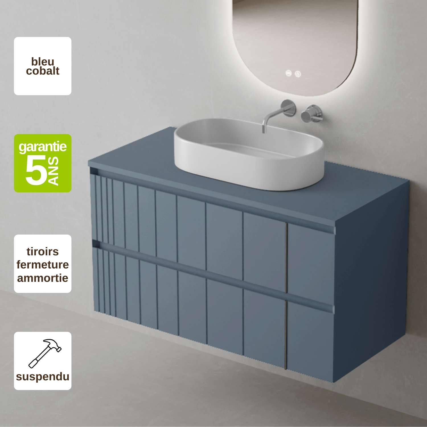 Meuble Salle de Bain POLE (61 cm x H54 x P45 cm), Plan Vasque Marin VAL WB, 2 Tiroirs, Laqué Bleu Cobalt Mat