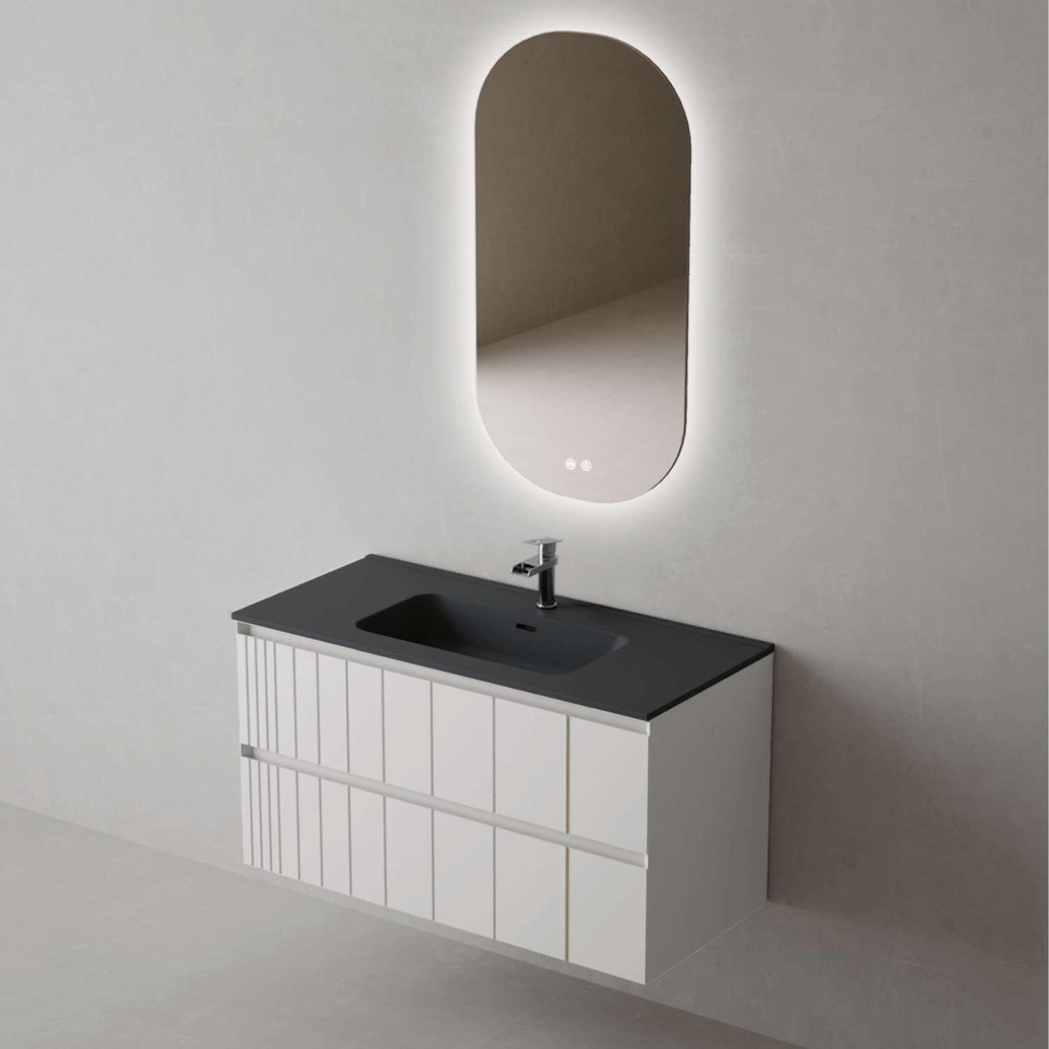 Meuble Salle de Bain POLE (81 cm x H54 x P45 cm), Plan Vasque Céramique NM, 2 Tiroirs, Laqué Blanc Mat