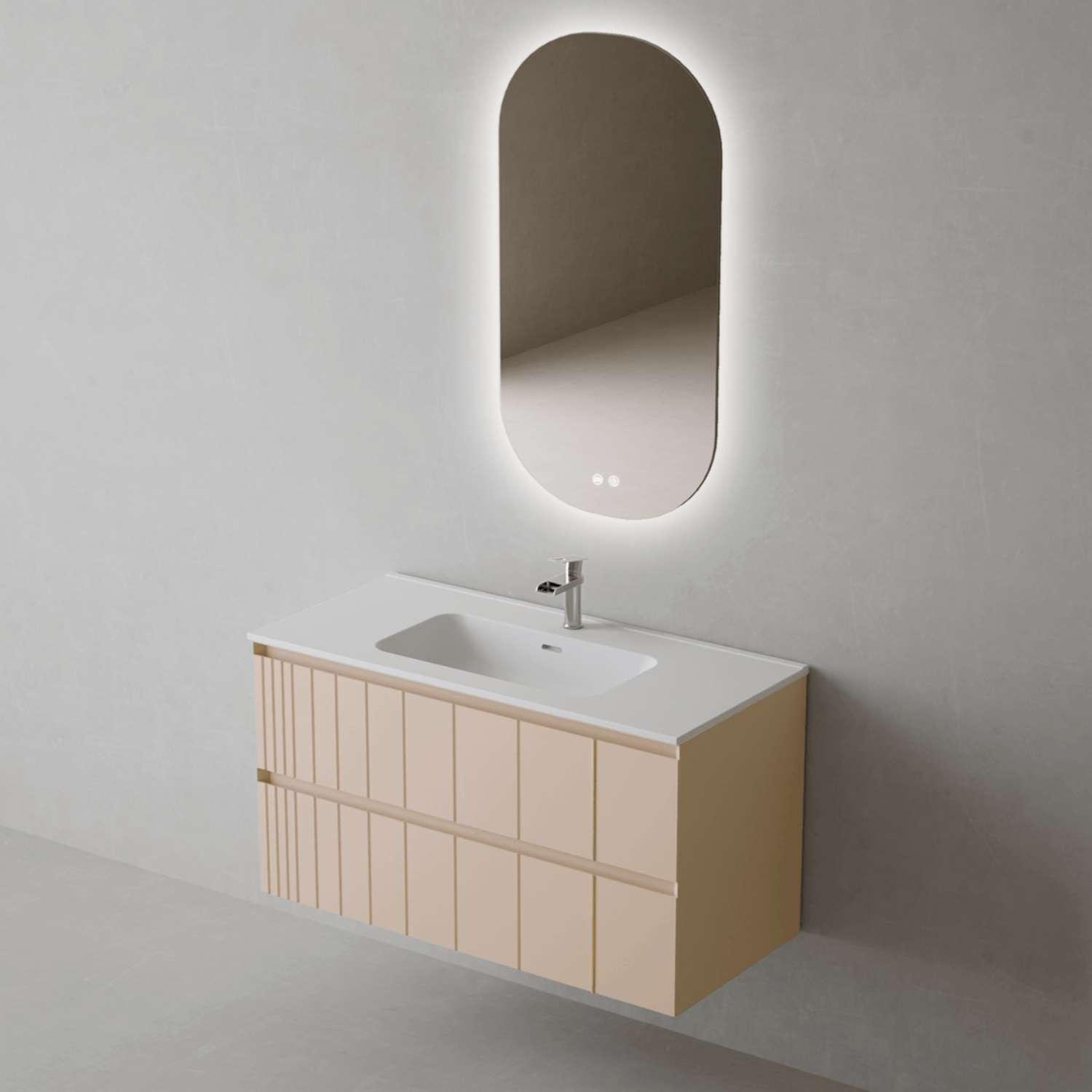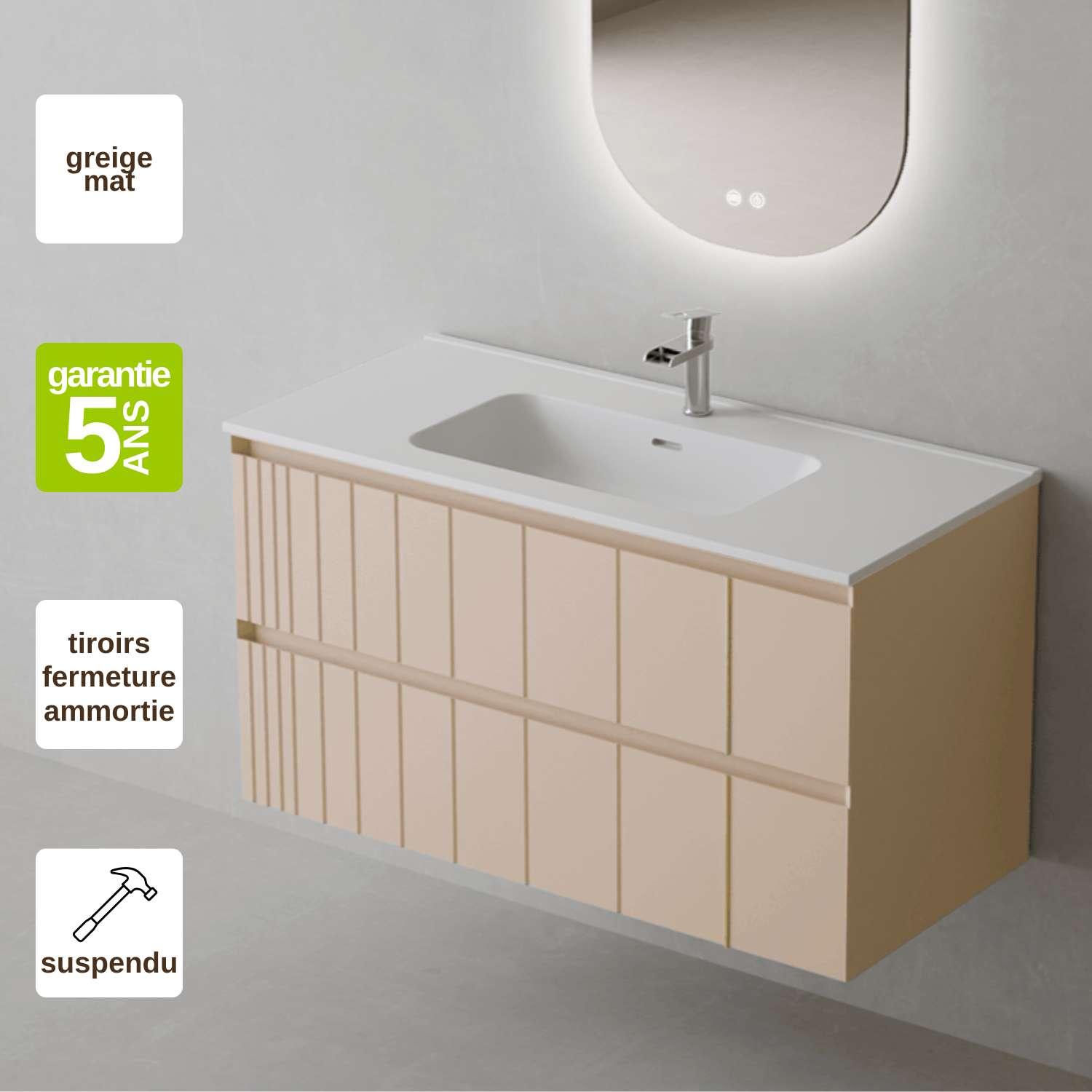 Meuble Salle de Bain POLE (81 cm x H54 x P45 cm), Plan Vasque Céramique WM, 2 Tiroirs, Laqué Greige Mat