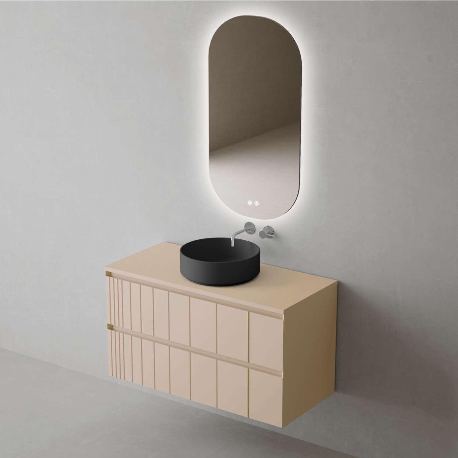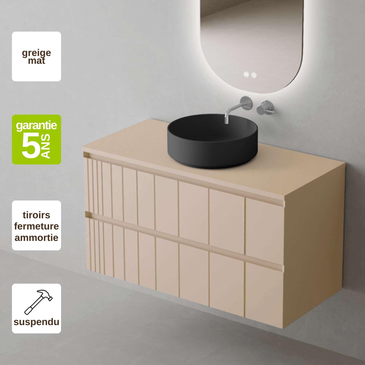 Meuble Salle de Bain POLE (81 cm x H54 x P45 cm), Plan Vasque Marin ROLL N.Mat, 2 Tiroirs, Laqué Greige Mat