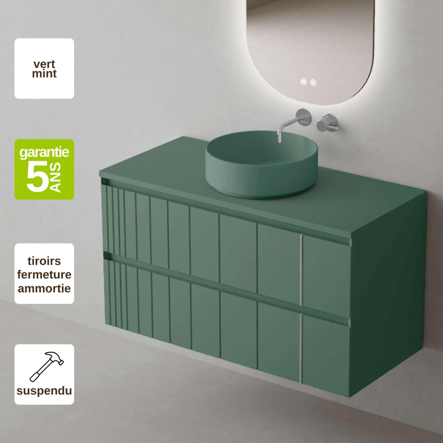 Meuble Salle de Bain POLE (81 cm x H54 x P45 cm), Plan Vasque Marin ROLL VM.Mat, 2 Tiroirs, Laqué Vert Mint