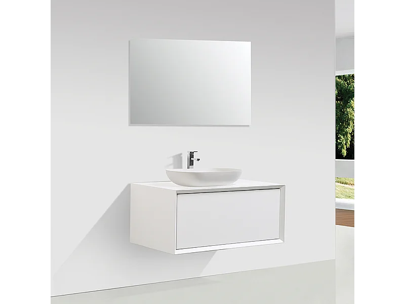 Meuble salle de bain pour vasque à poser PALIO largeur 90 cm blanc mat