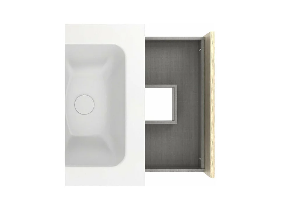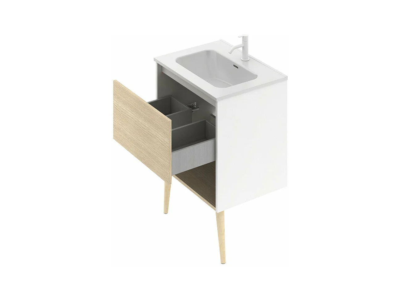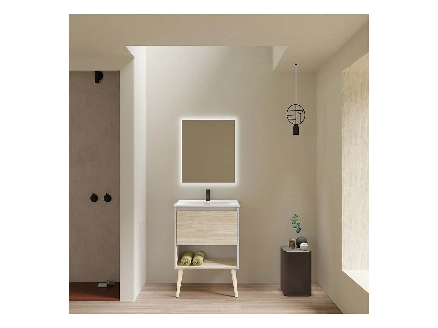 Meuble salle de bain simple vasque NARA chêne clair et blanc 60 cm Miroir non inclus