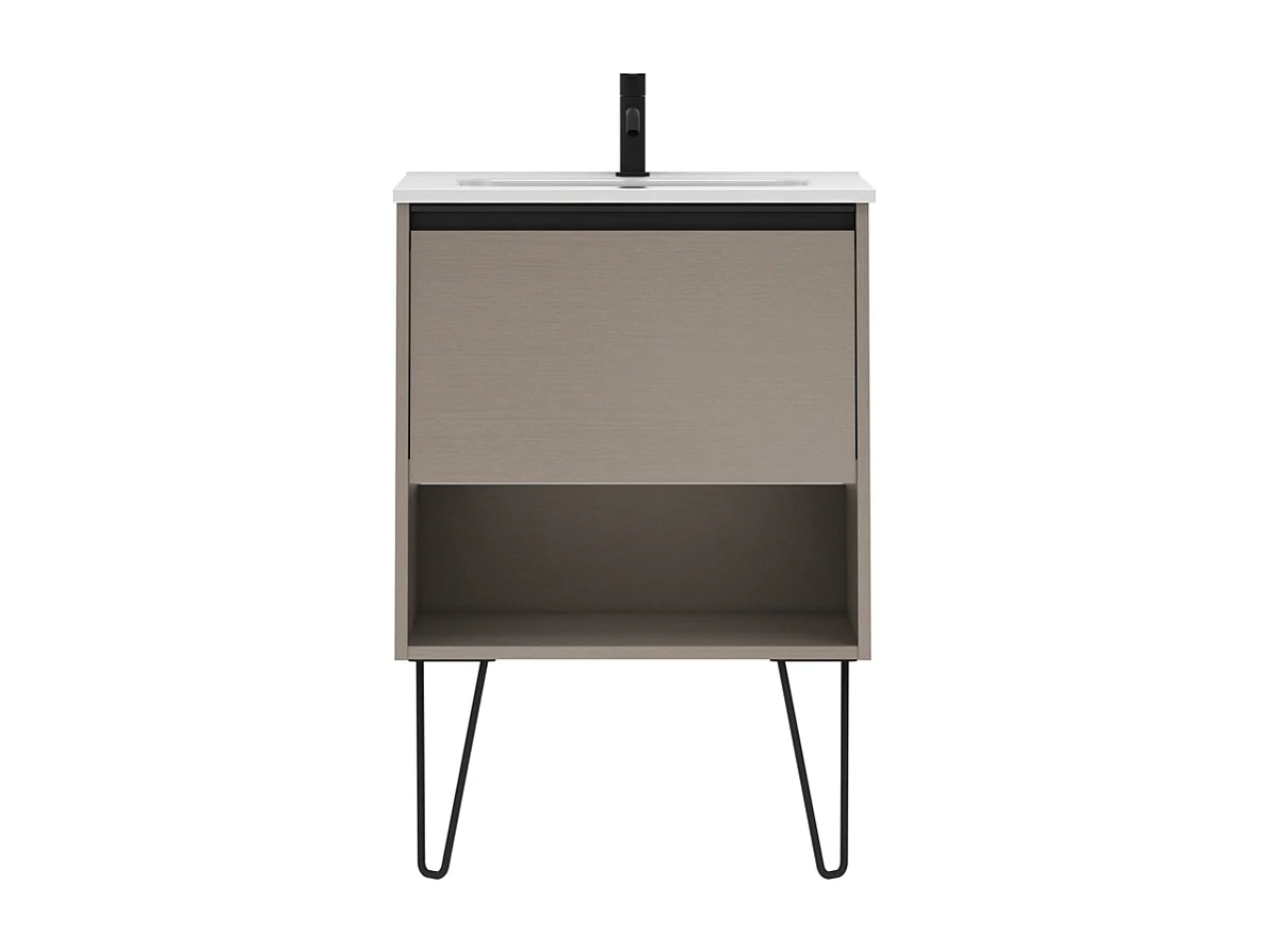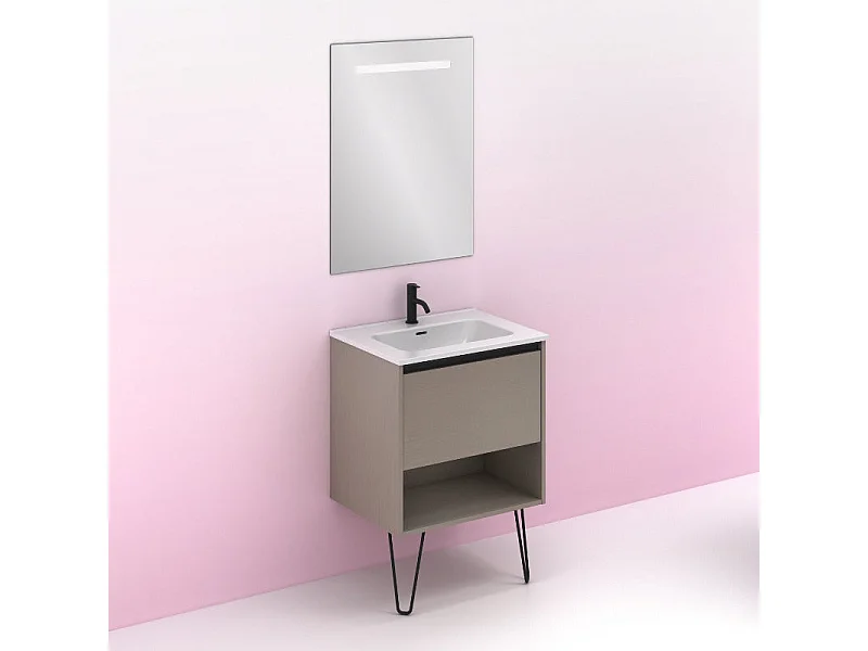 Meuble salle de bain simple vasque YOKO fumé sablé 60 cm Gris Miroir non inclus