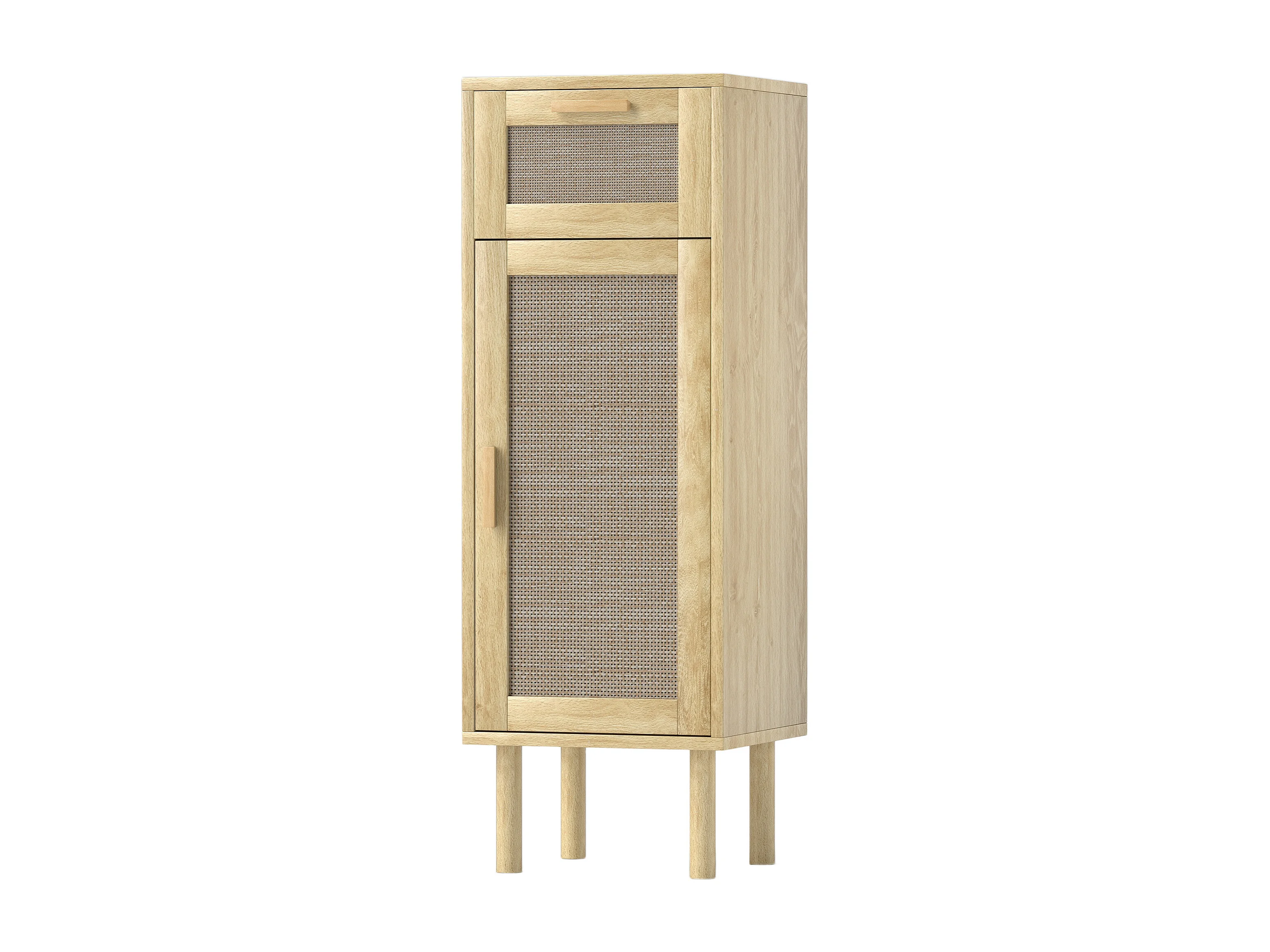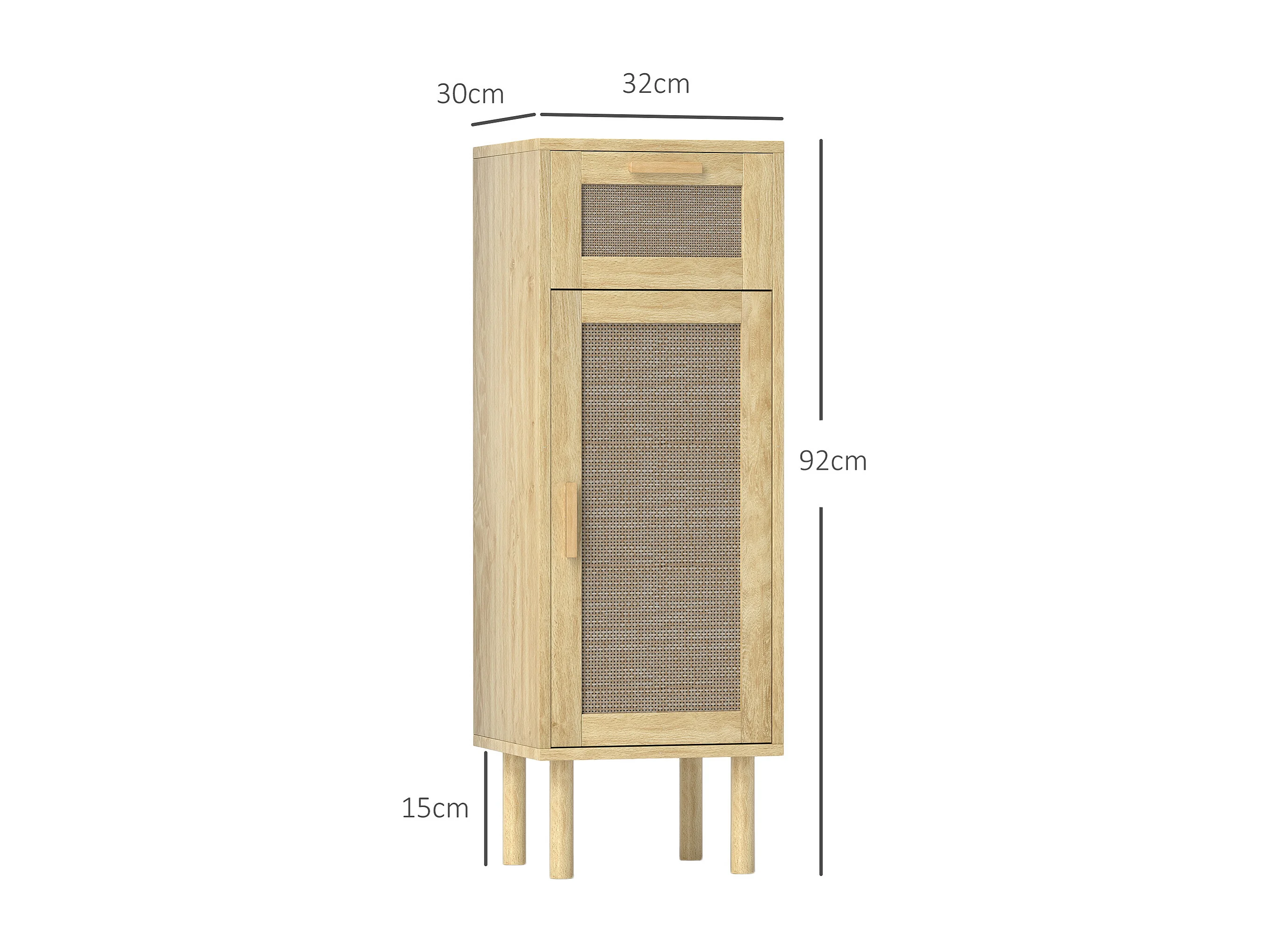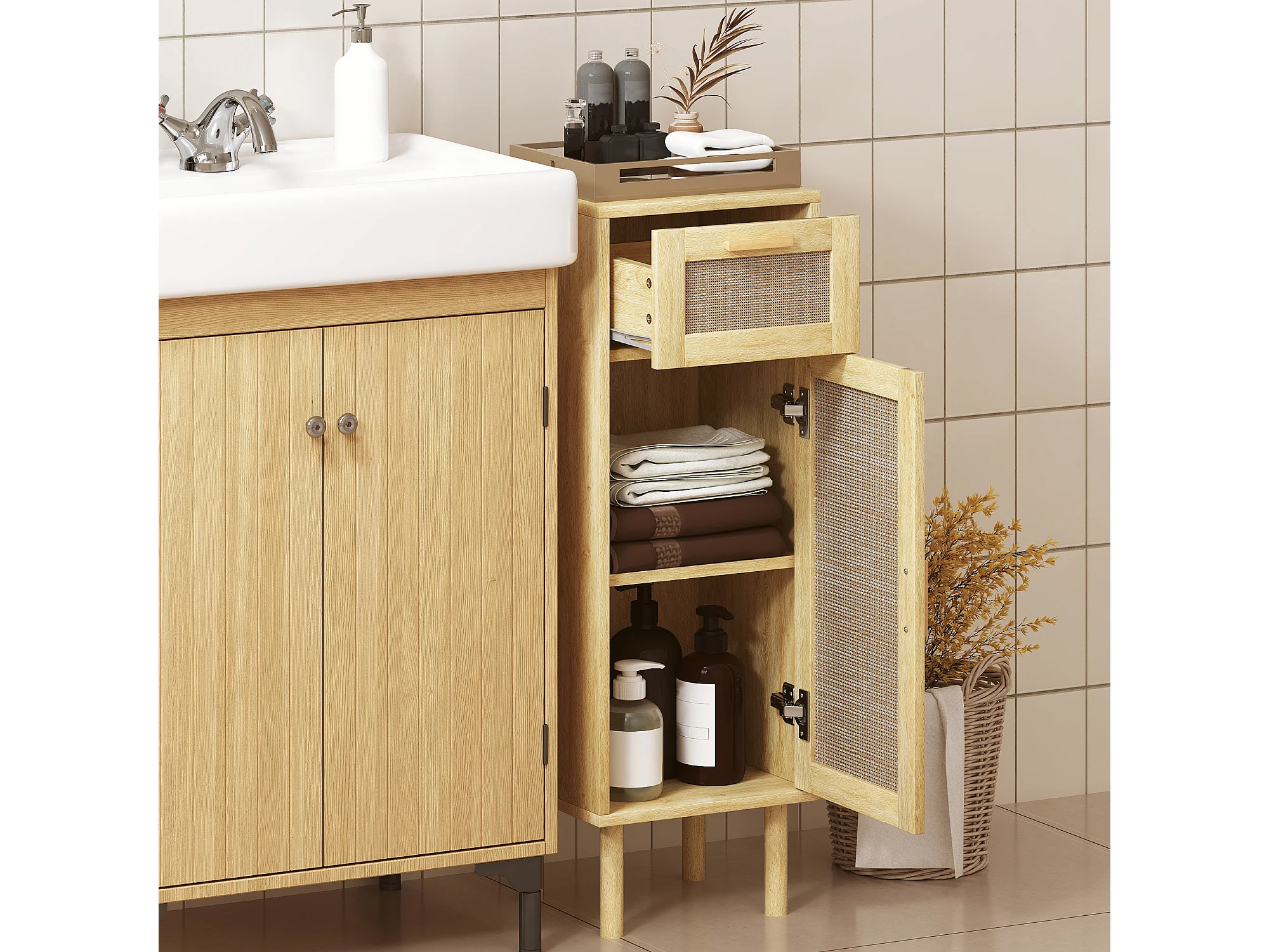 Meuble salle de bain style bohème - tiroir, placard, étagères - effet rotin bois