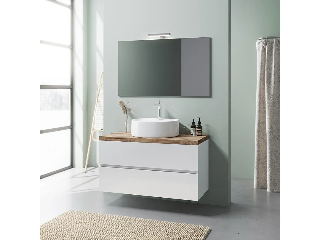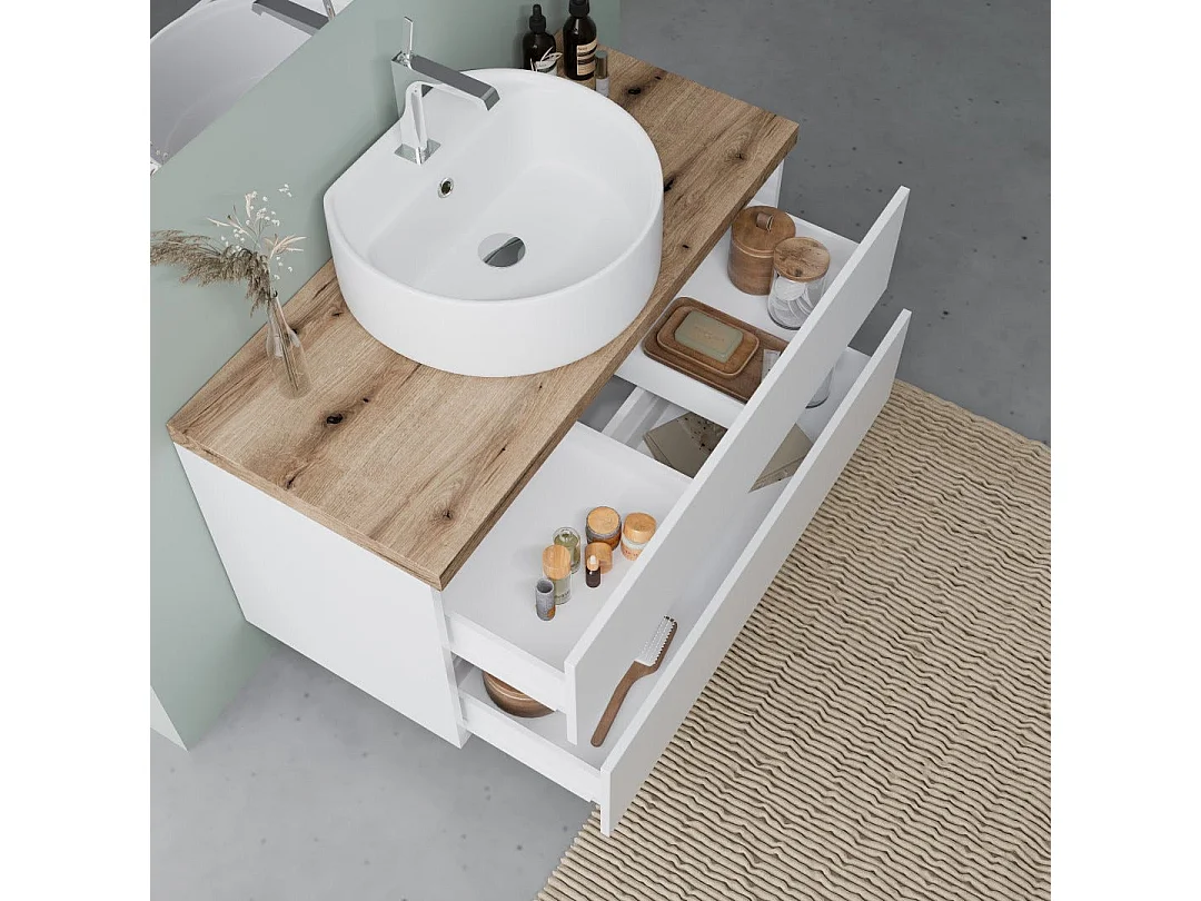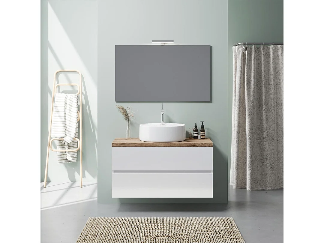 Meuble Salle De Bains À Suspendre 100 Cm, Chêne Blanc Brillant, Vasque À Poser | Elba