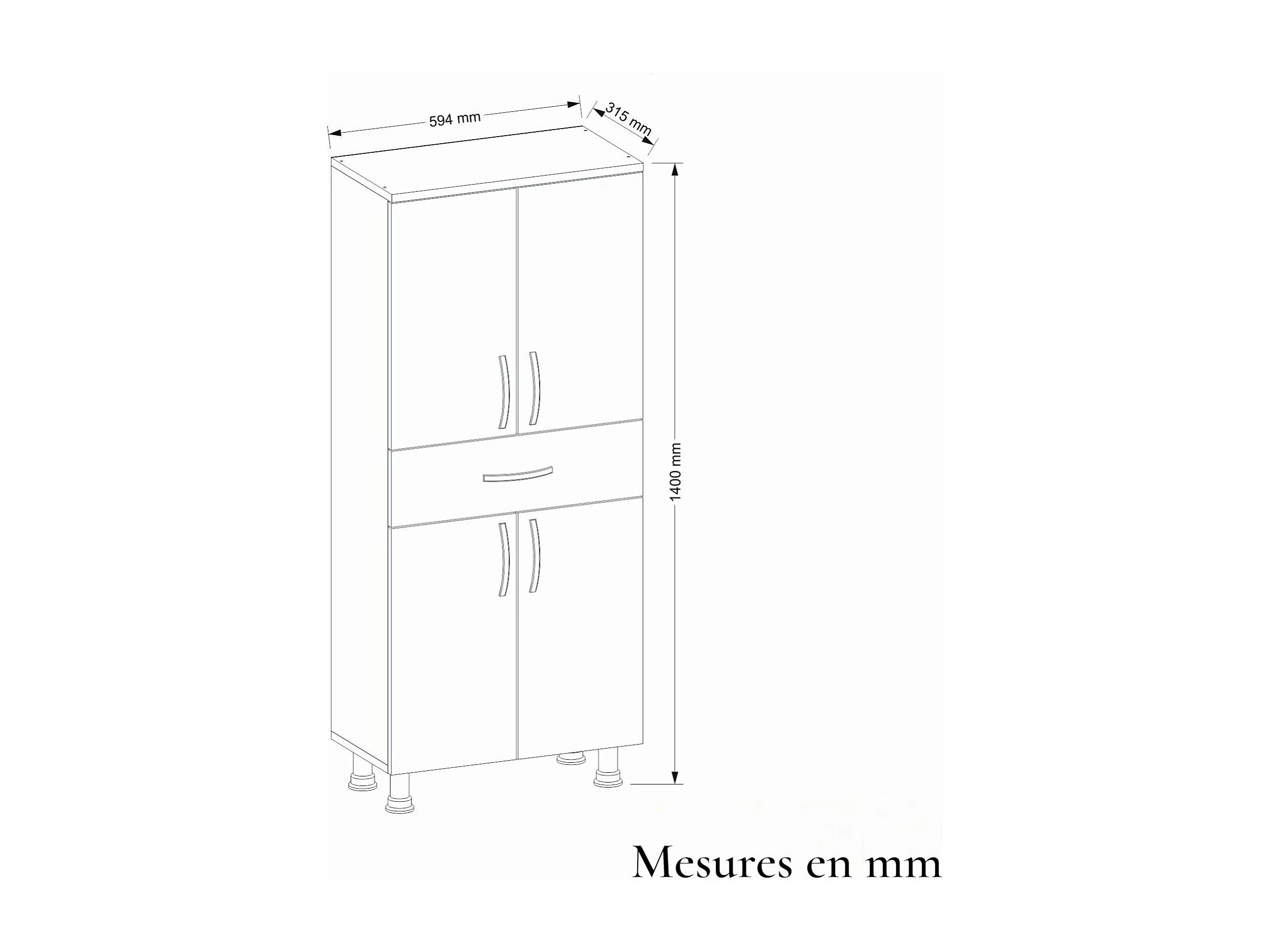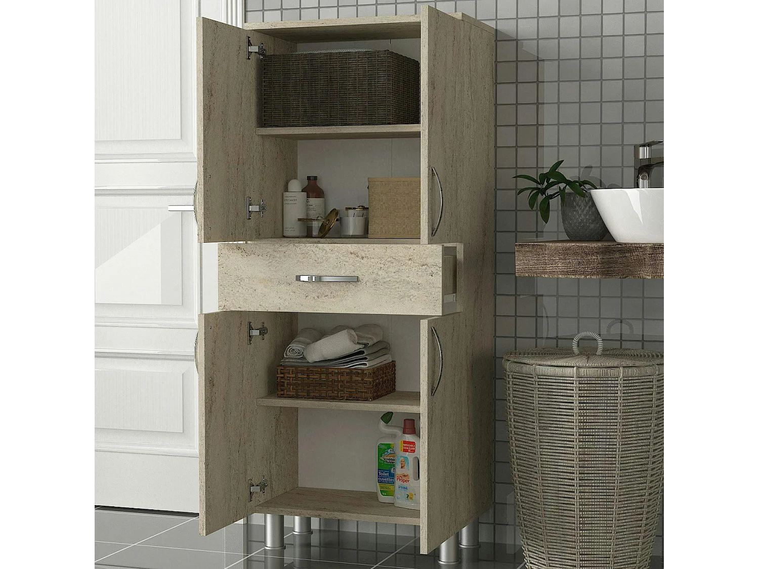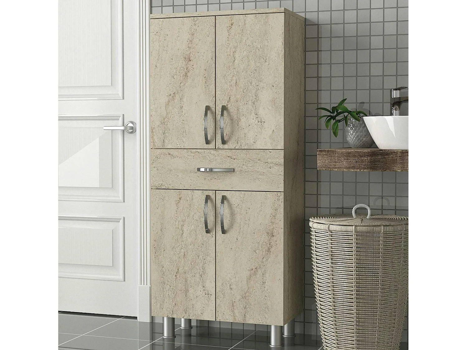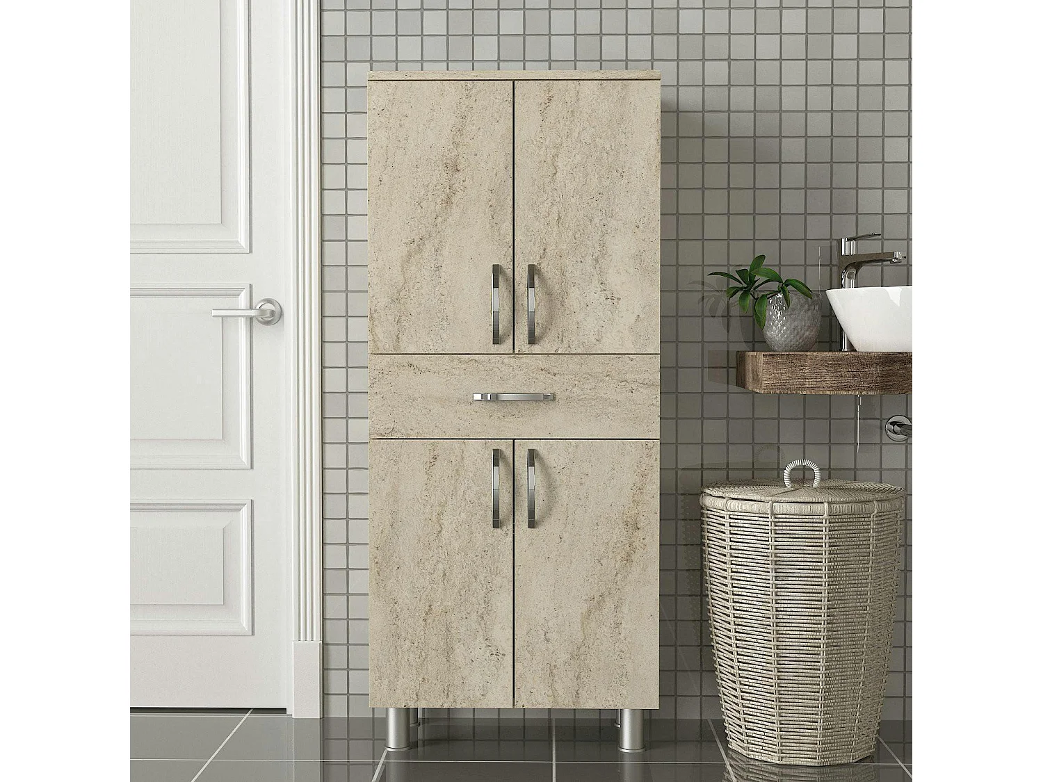 Meuble salle de bains effet travertin, 4 portes 1 tiroir JENA