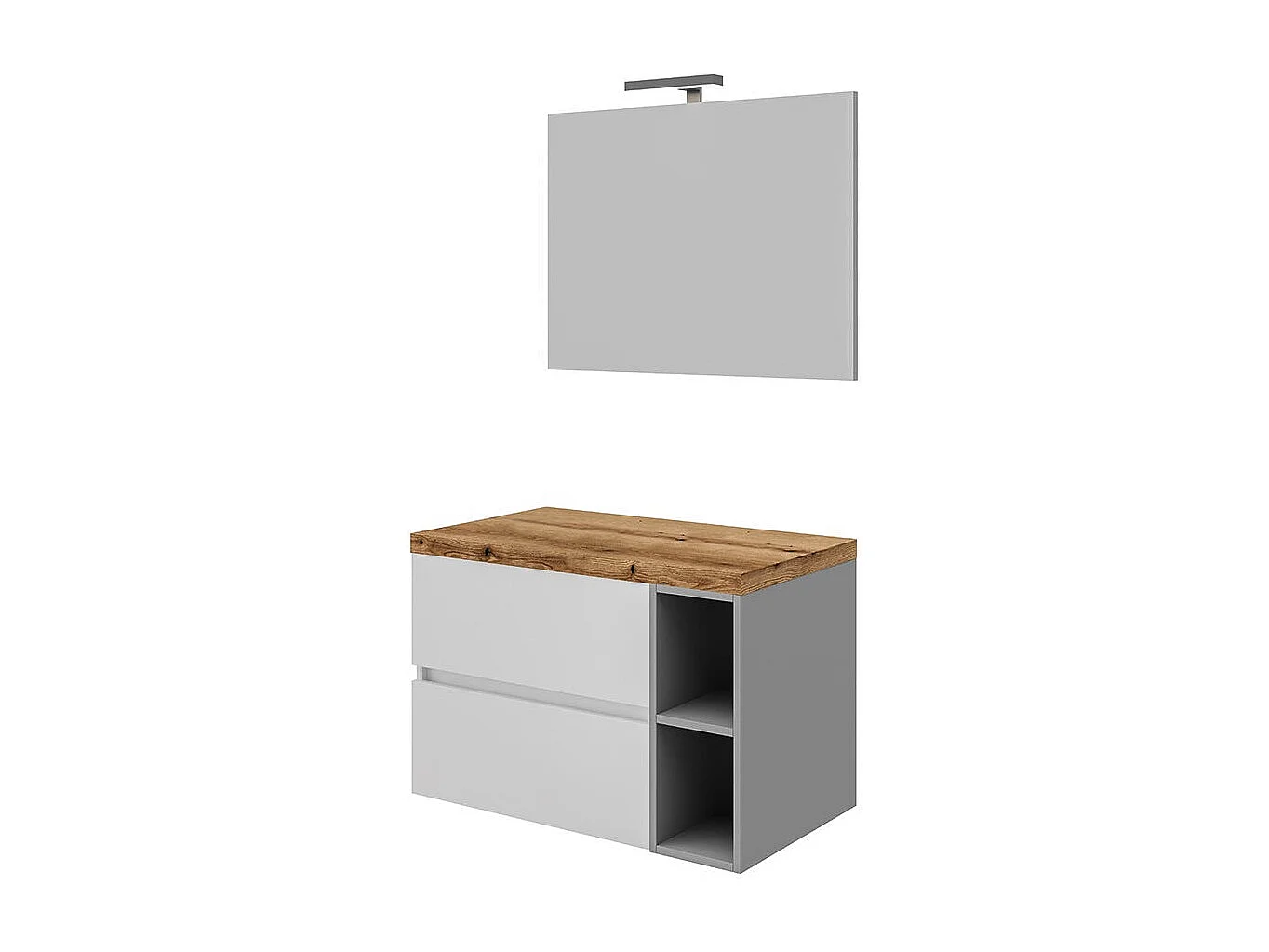 Meuble Salle De Bains Suspendu 80Cm Avec 2 Tiroirs Et Compartiment Ouvert | Nizza
