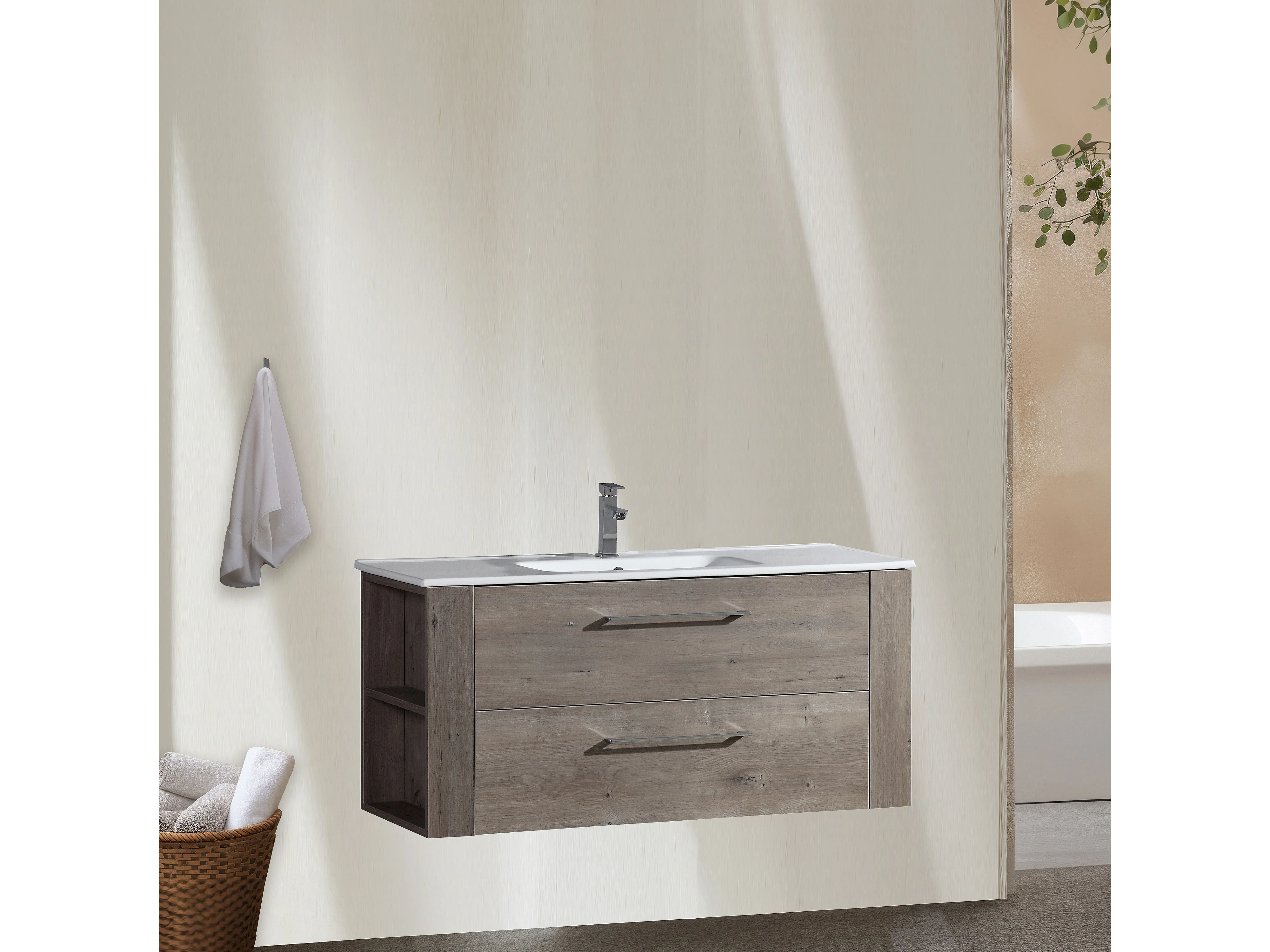 Meuble avec vasque 100 cm chêne brun Aquanoma