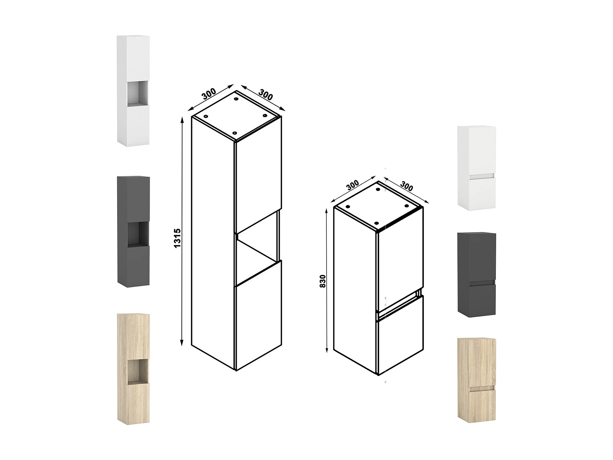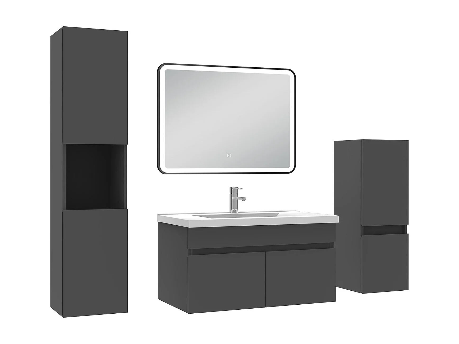 Meuble simple vasque 80cm avec colonne + miroir lumineux 3 couleurs + dimmable anthracite