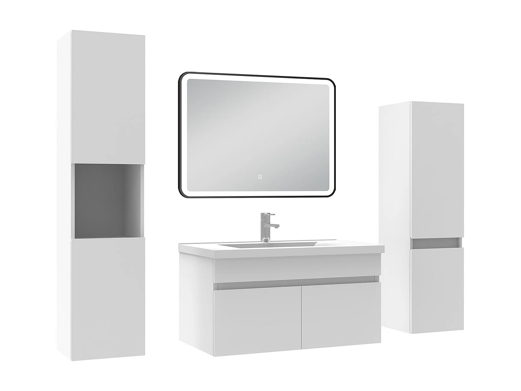Meuble simple vasque blanc 80cm avec colonne + miroir lumineux 3 couleurs + dimmable