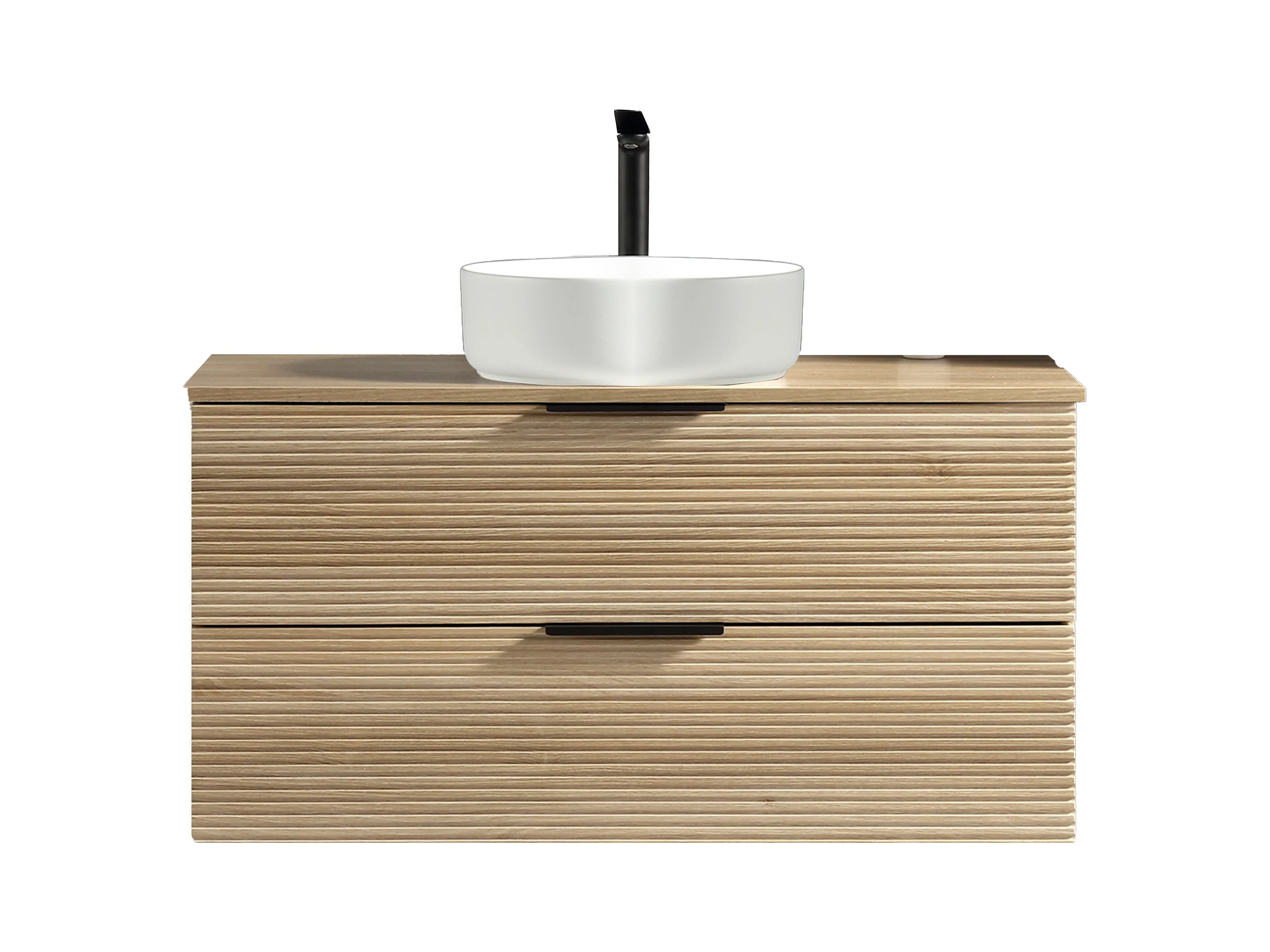 Meuble 120 cm chêne clair avec vasque à poser blanc mat Aqualinea