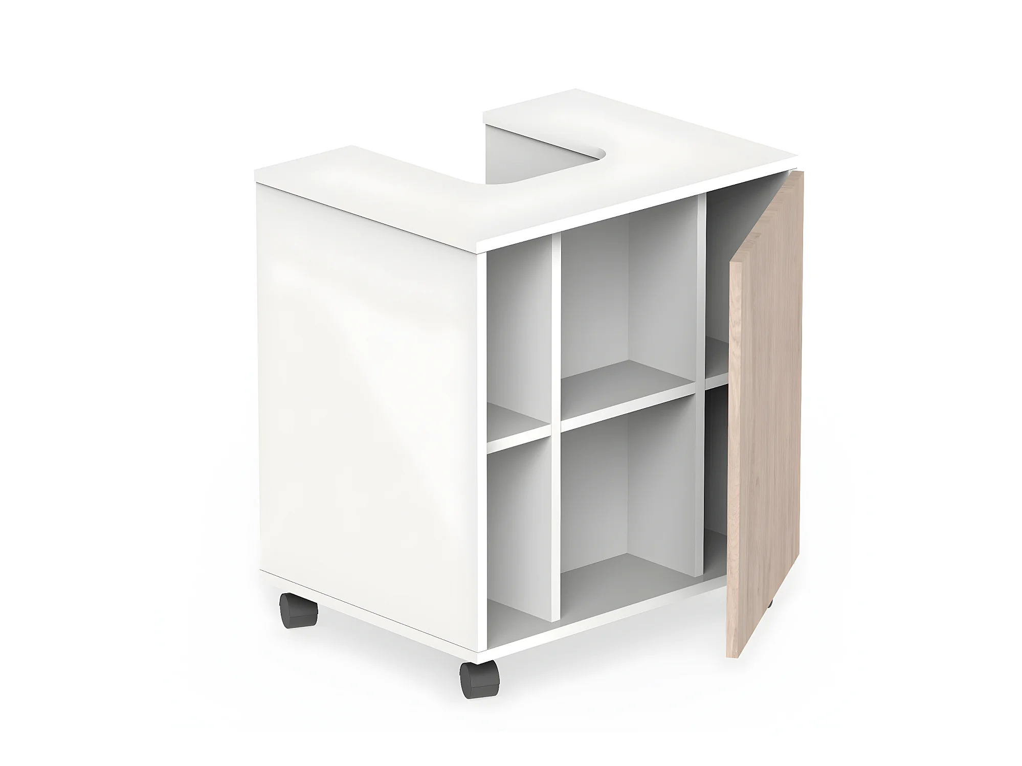 Meuble sous lavabo 1 porte coloris Blanc brillant / effet bois - Hauteur 64 x Longueur 59 x Profondeur 45 cm