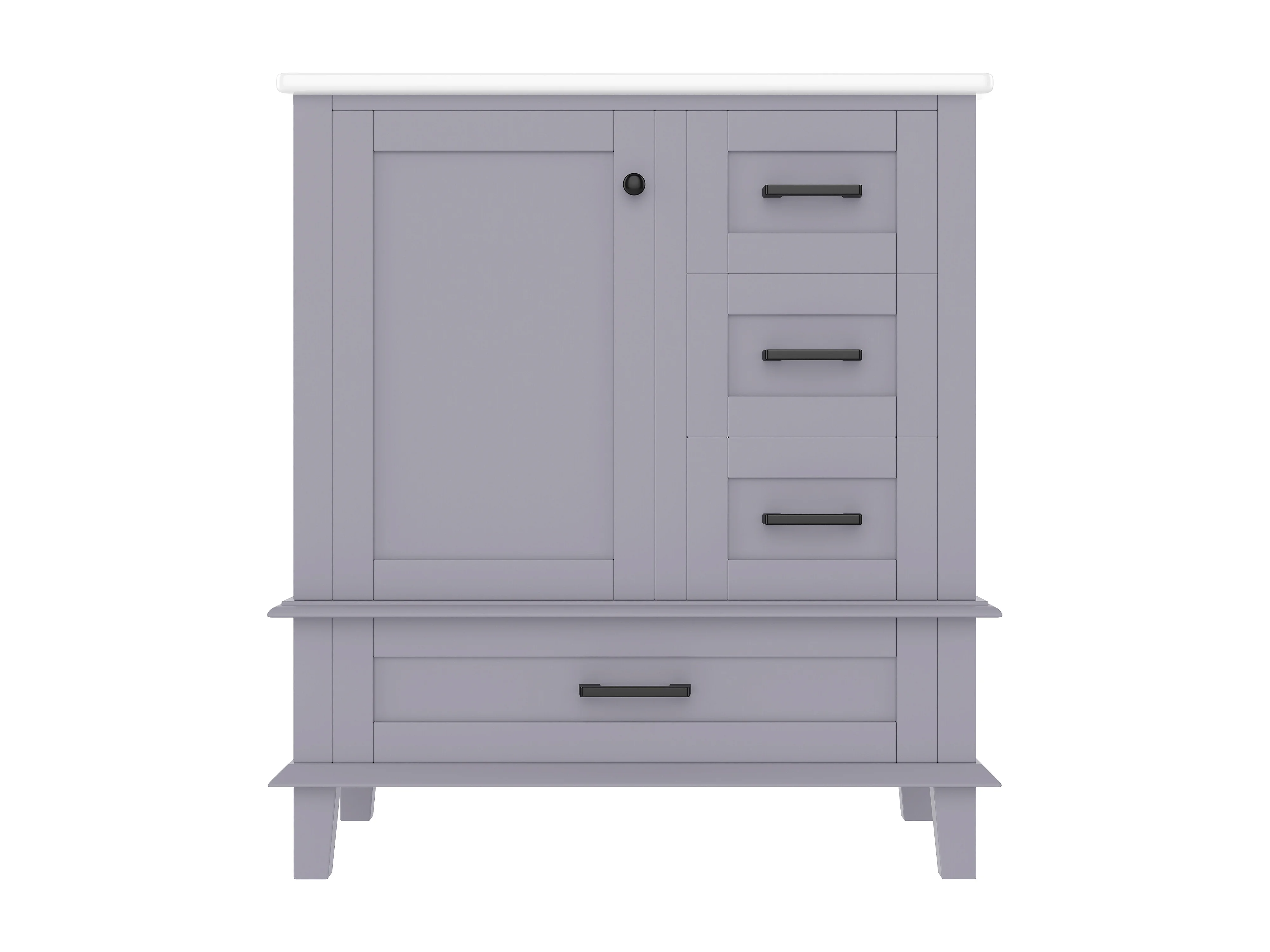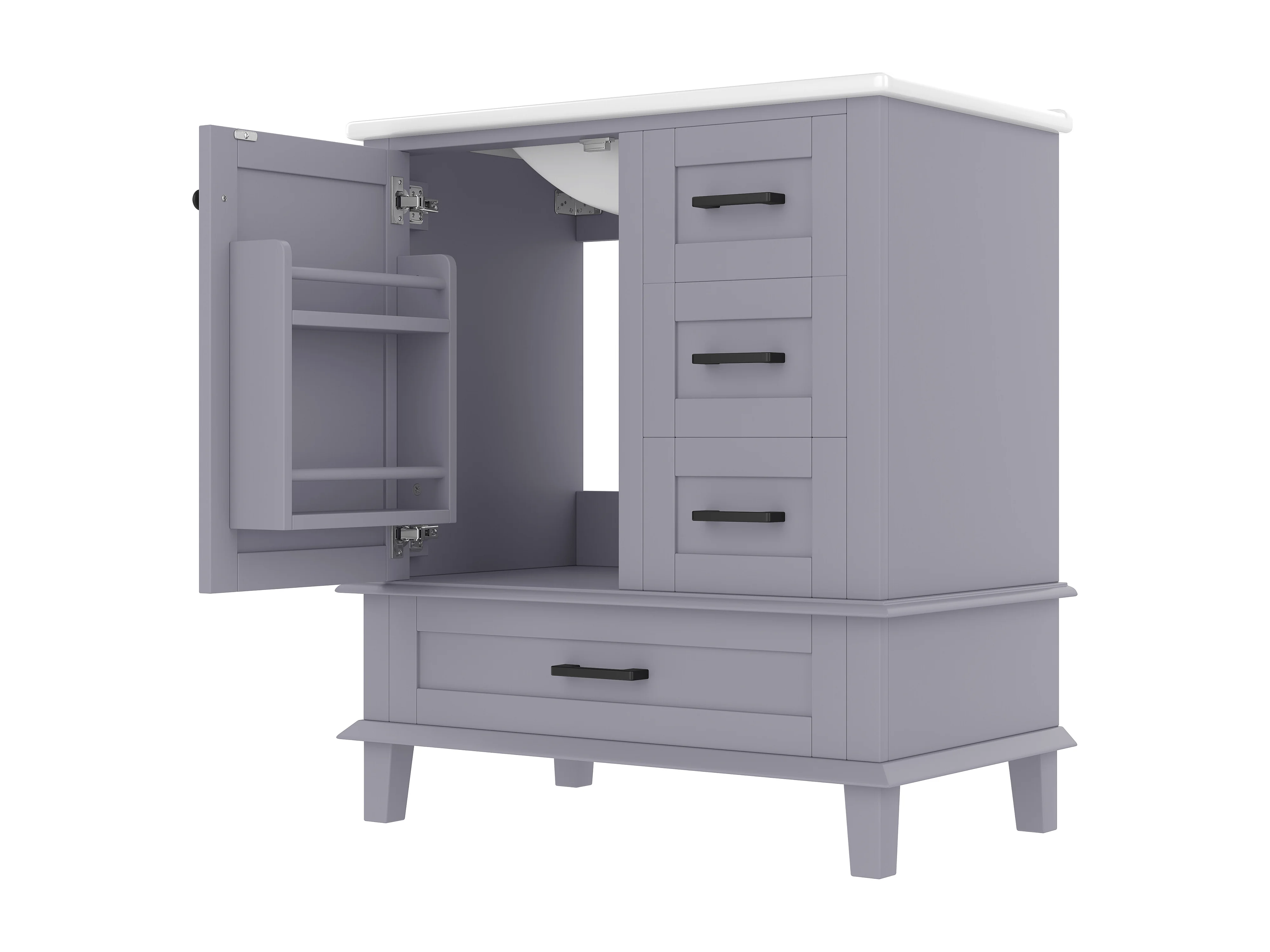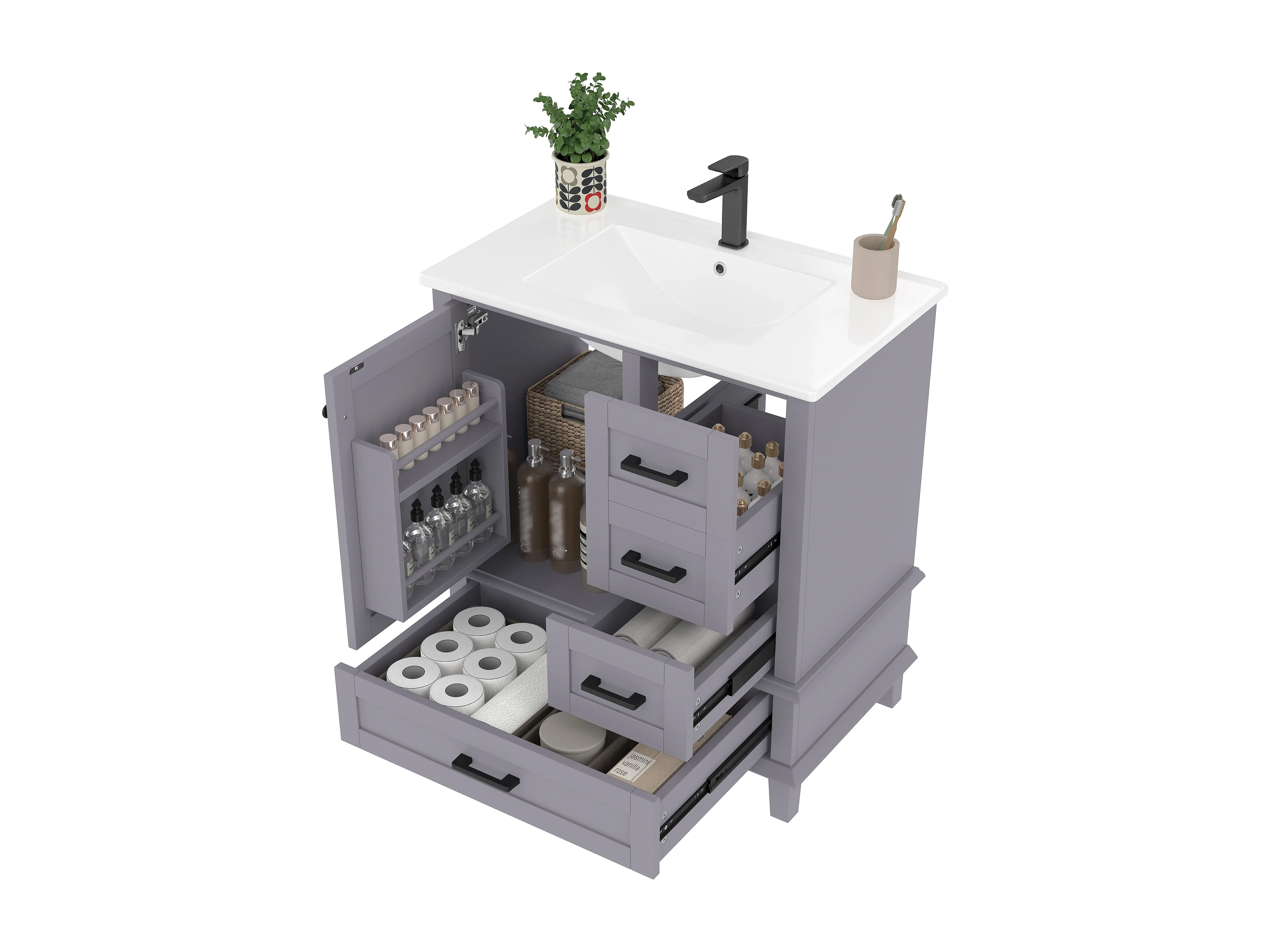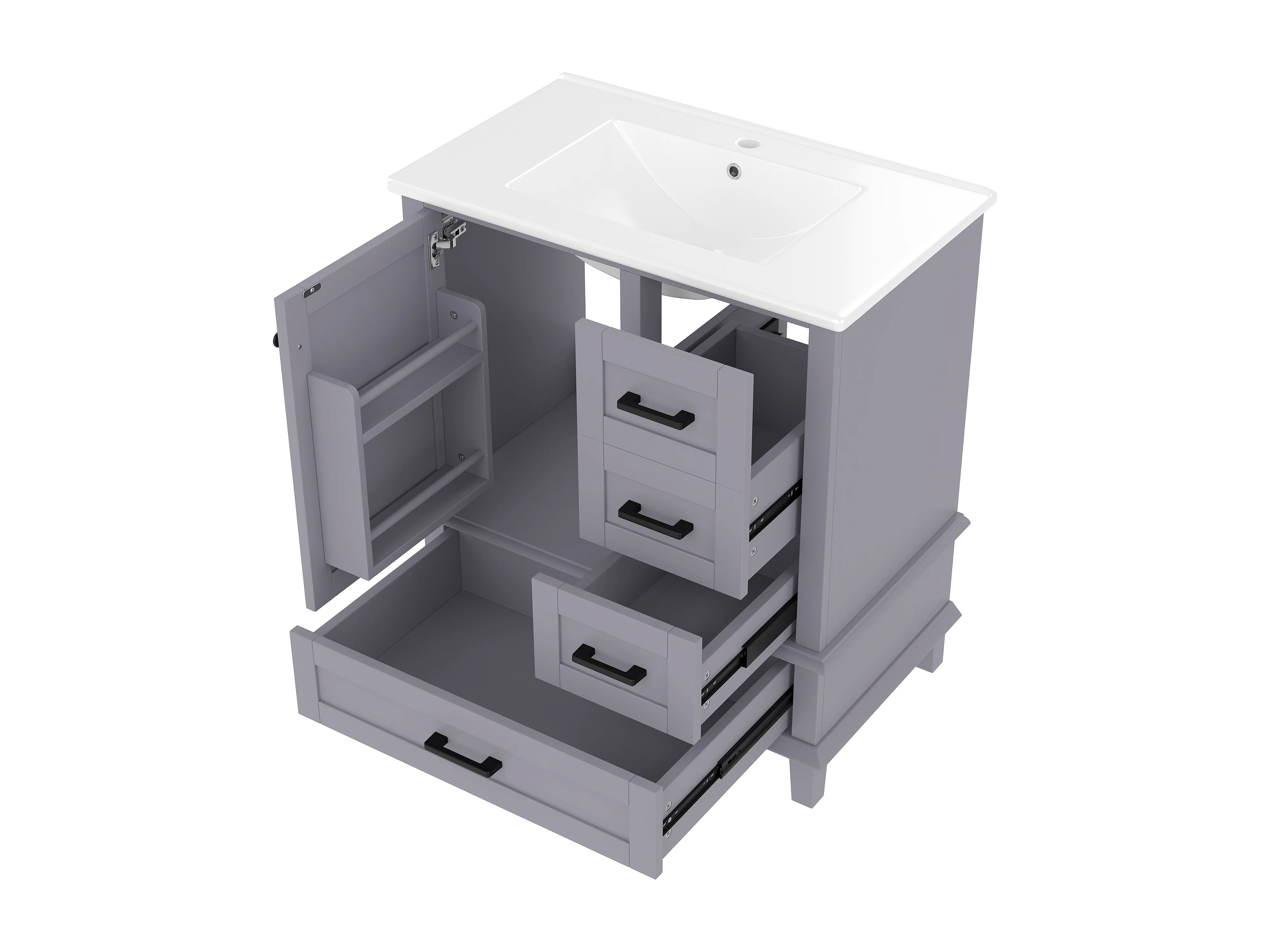 Meuble sous-lavabo avec 3 tiroirs et lavabo céramique gris 76x46x83.5 cm
