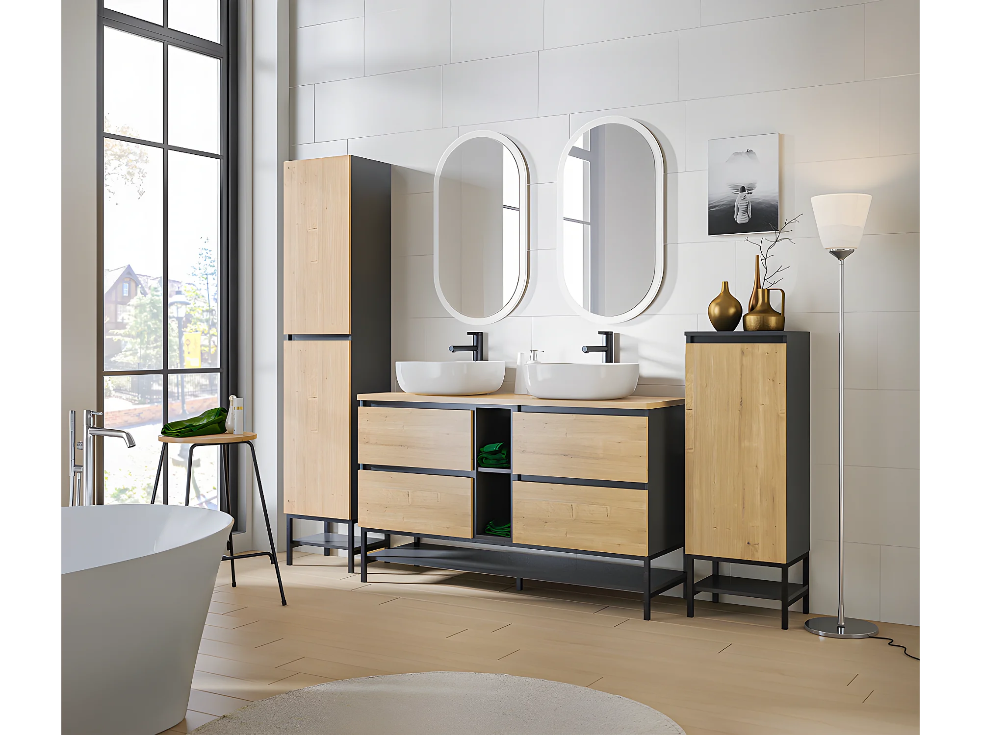 Meuble sous lavabo de salle de bain - Chêne hamiltion et gris diamant - L60-H57-P46 - Marseilla