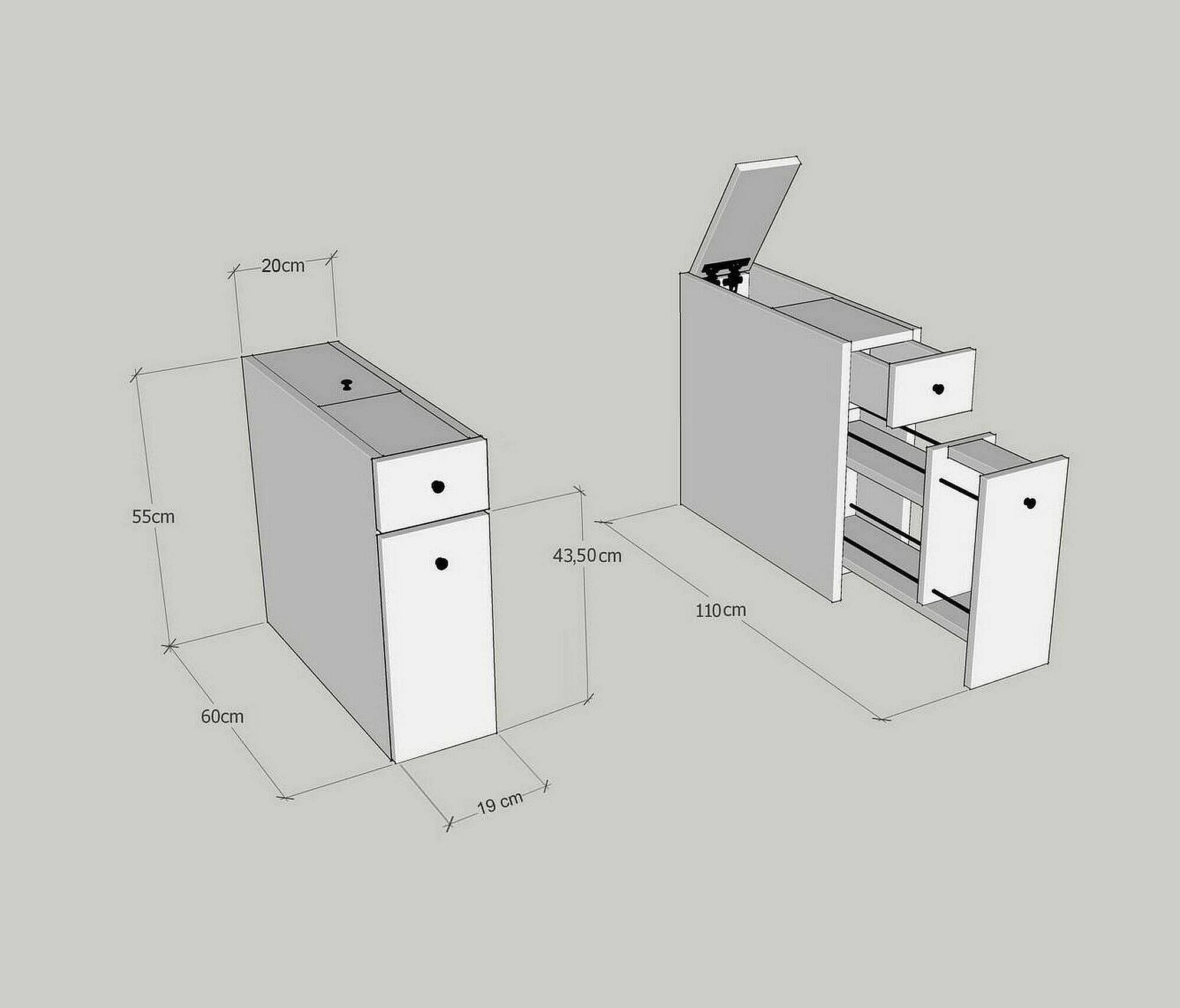Meuble sous lavabo Galene, Armoire de toilette, Récipient pour lavabo, Meuble d'évier, 20x60h55 cm, Anthracite