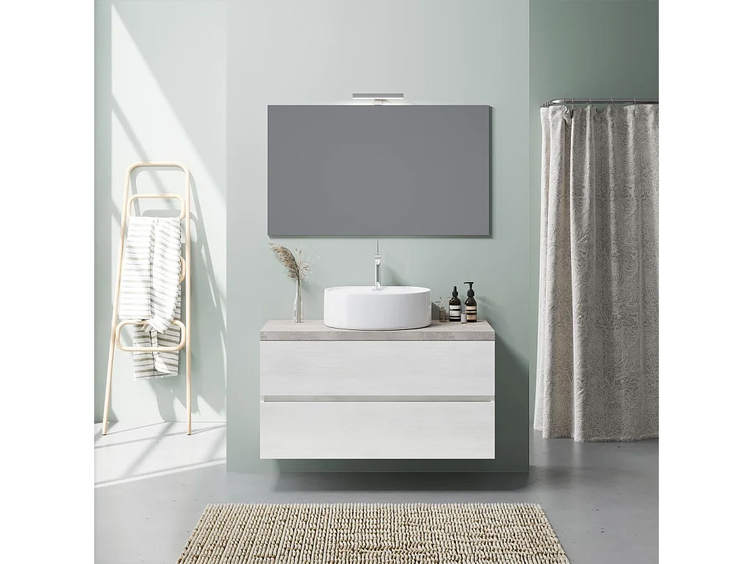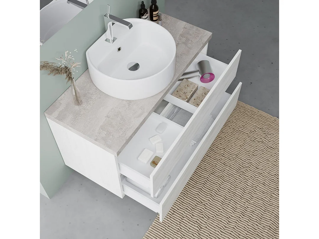 Meuble Sous Vasque 100Cm Chêne Blanc Et Beton, Vasque À Poser | Elba