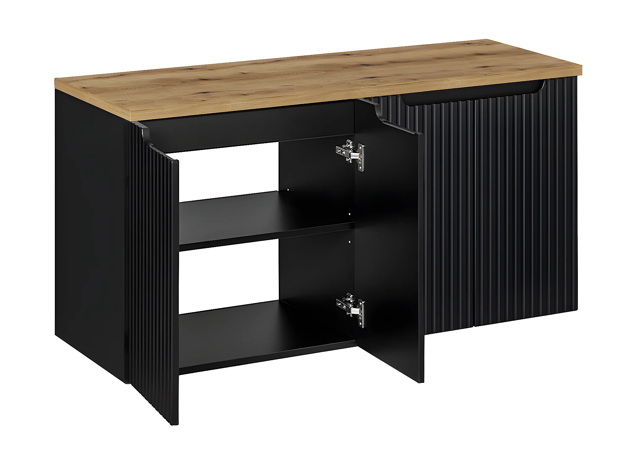 Meuble sous-vasque 120cm 4 portes plan de toilette Riva Noir et Bois