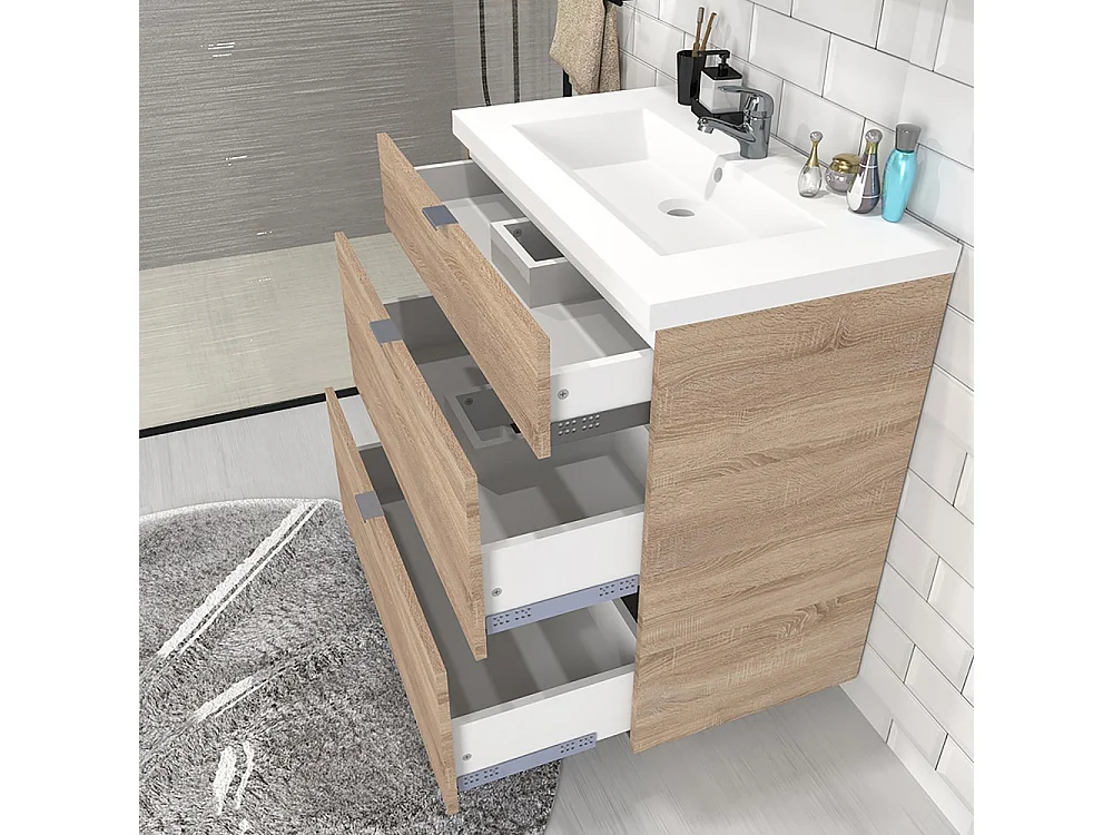 Meuble sous-vasque 3 tiroirs MARBELLA 80 cm + vasque / Décor Chêne blanchi