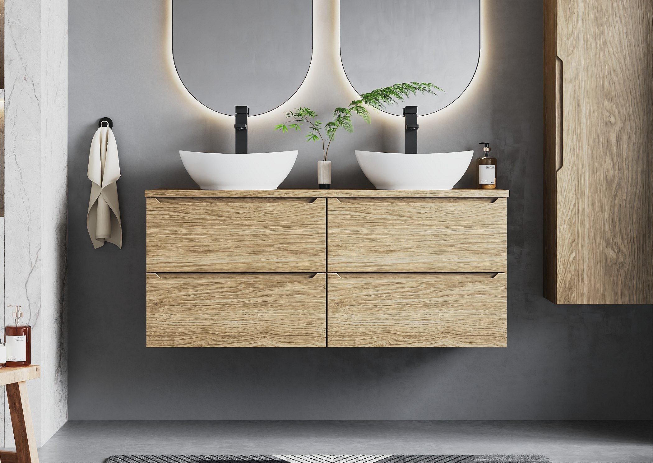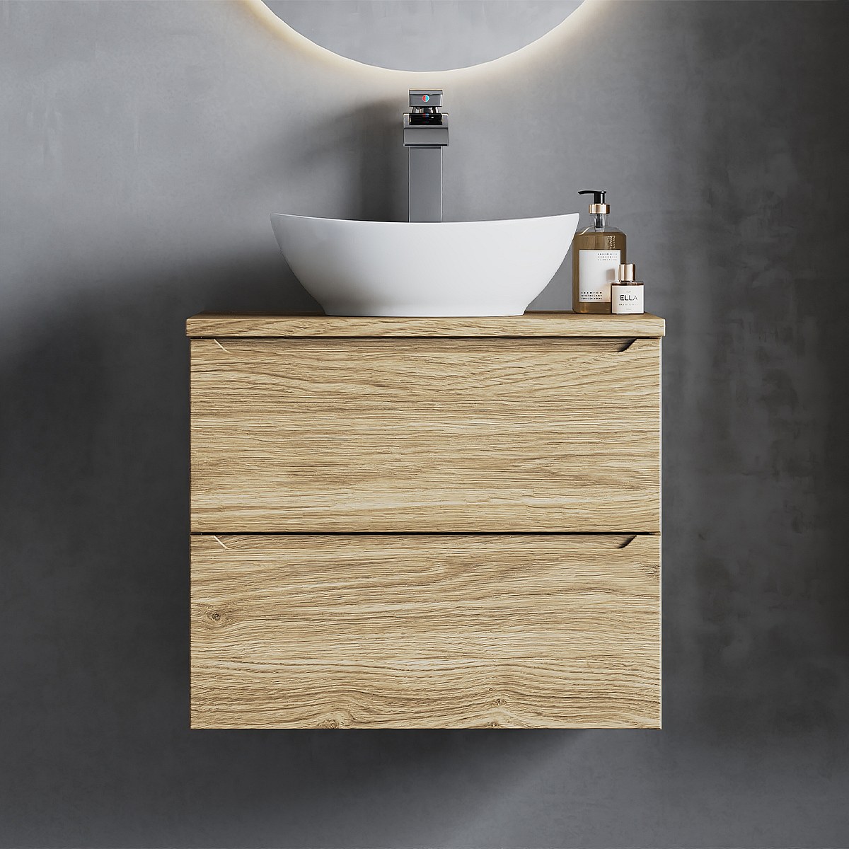 Meuble sous lavabo 60 cm 2 tiroirs Chêne huilé Etna