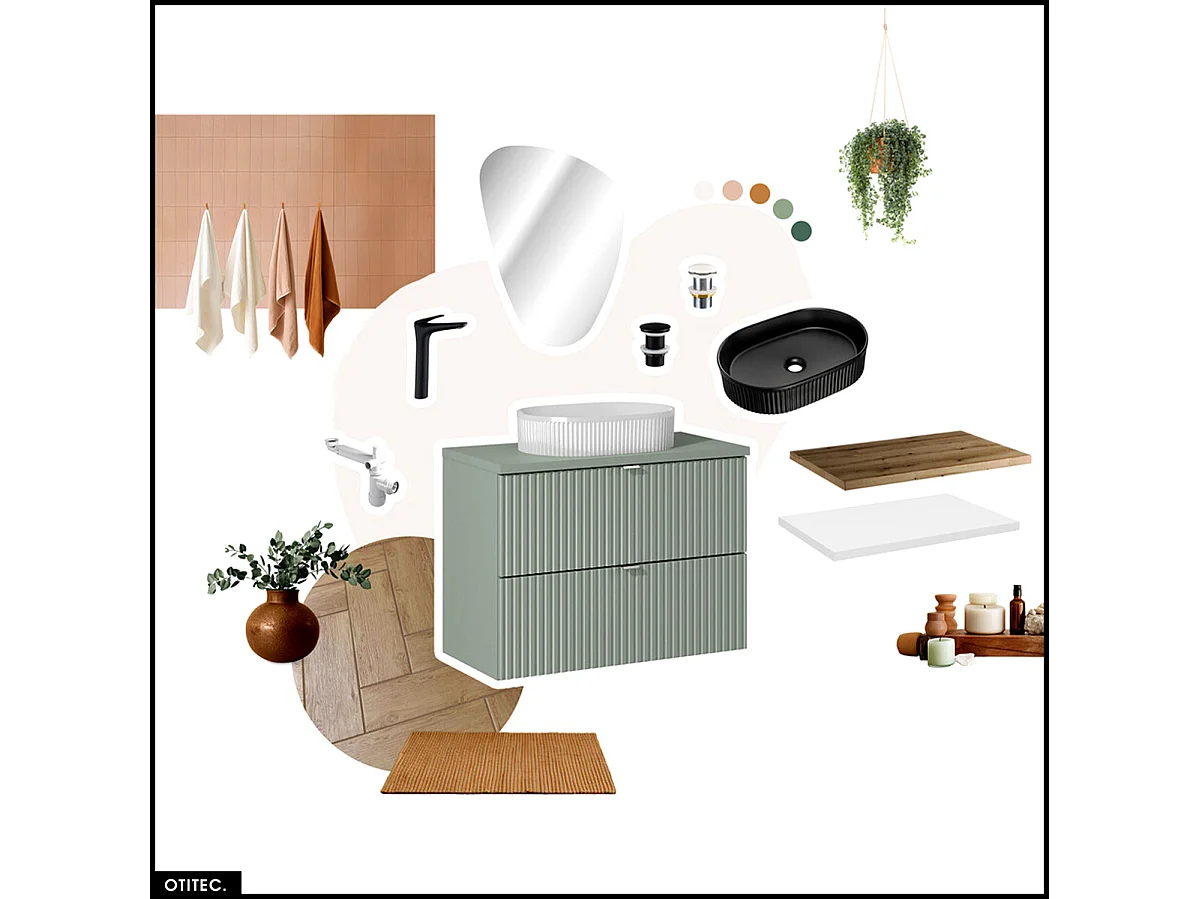 Meuble sous vasque - 80 cm - avec Plan - Vasque à poser - ROSEAU