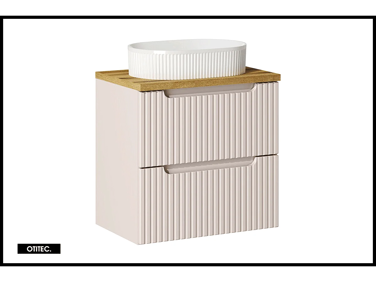 Meuble sous vasque de 60 cm - avec vasque à poser - avec plan - Cachemire Mat/Oak - 2 tiroirs - VOLTA CASHMERE