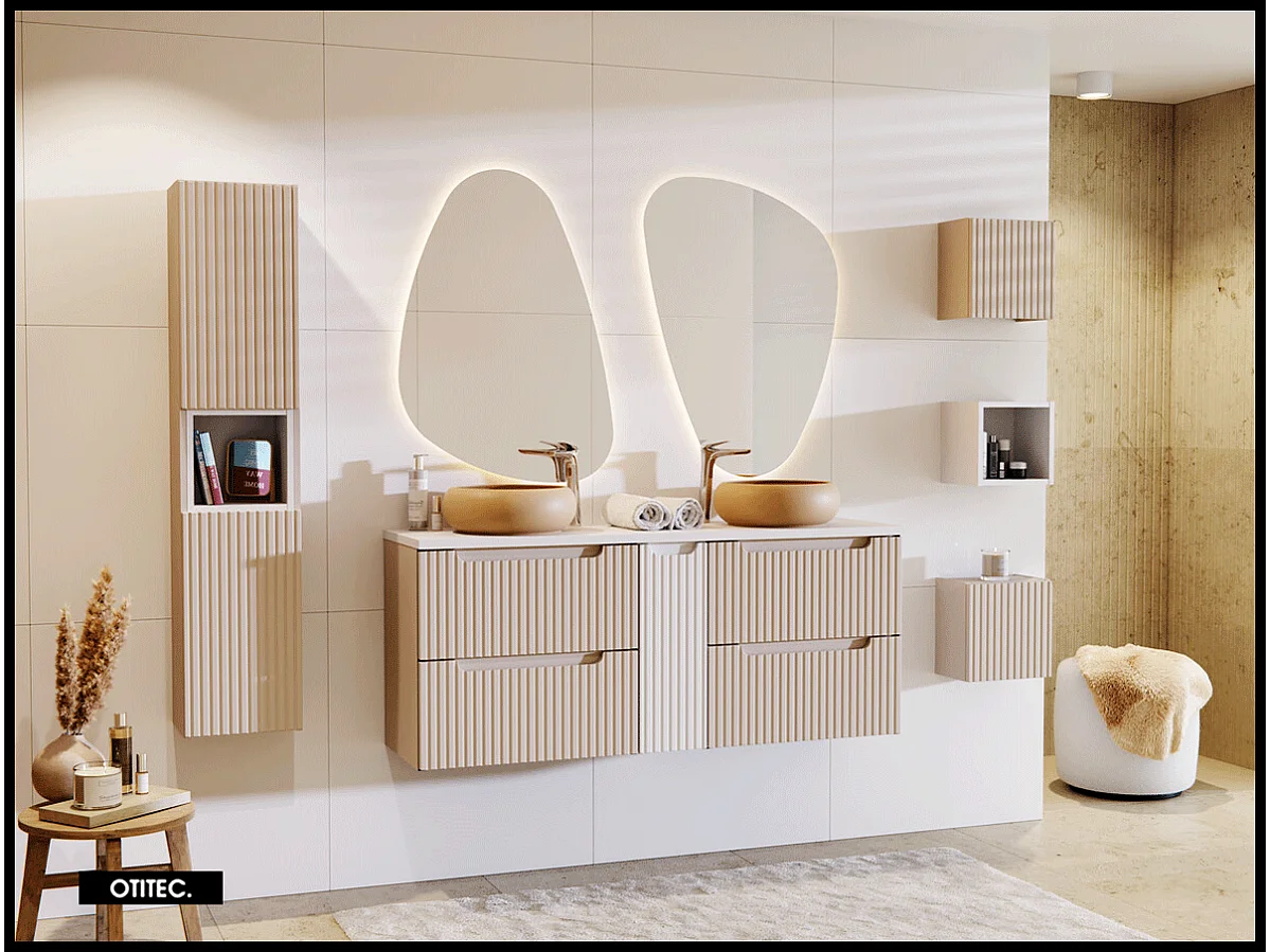 Meuble sous vasque de 60 cm - Cachemire Mat - 2 tiroirs - VOLTA