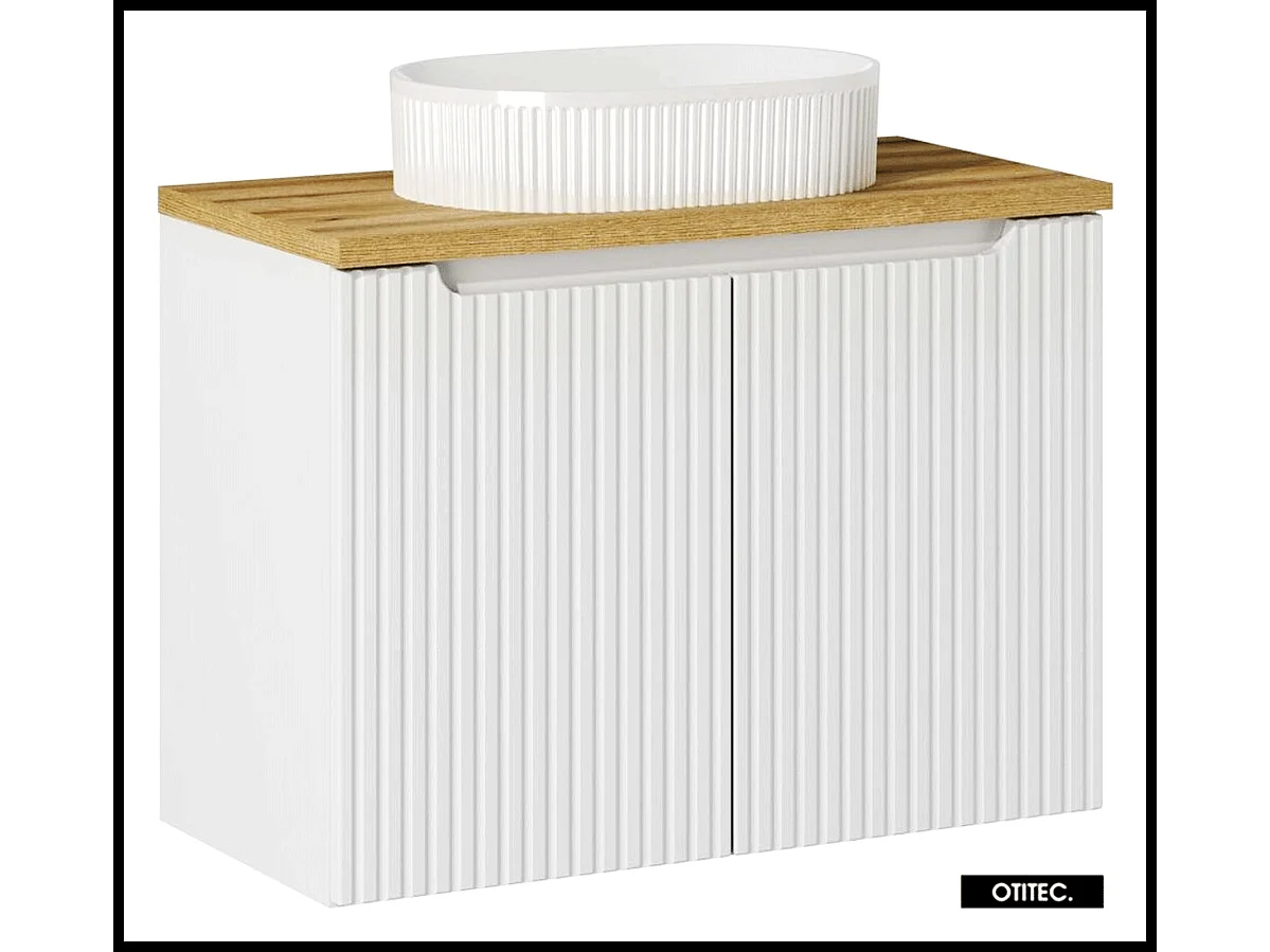 Meuble sous vasque de 80 cm - avec vasque à poser - avec plan - Oak/Blanc - 2 portes - VOLTA WHITE