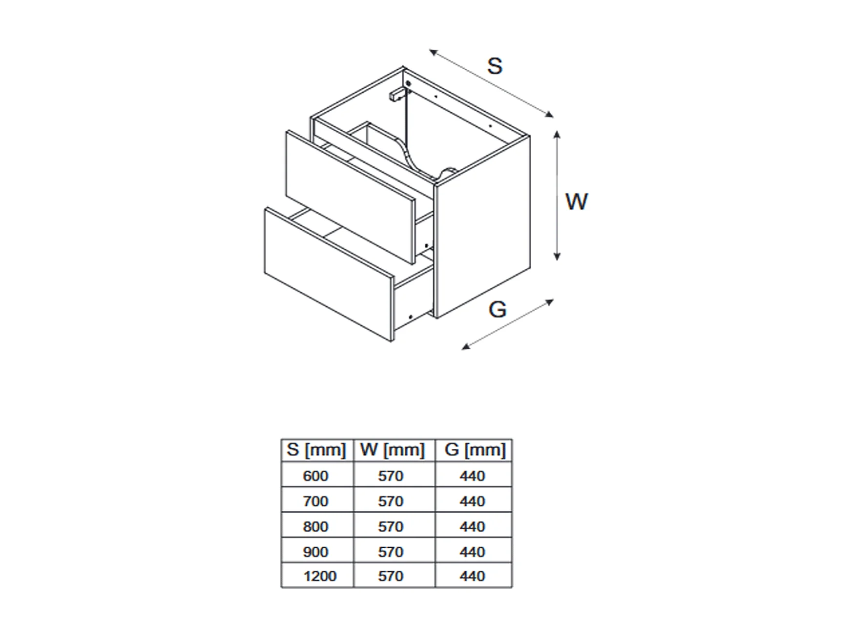 Meuble sous vasque de 90 cm - avec plan - 2 tiroirs - SEA BLACK