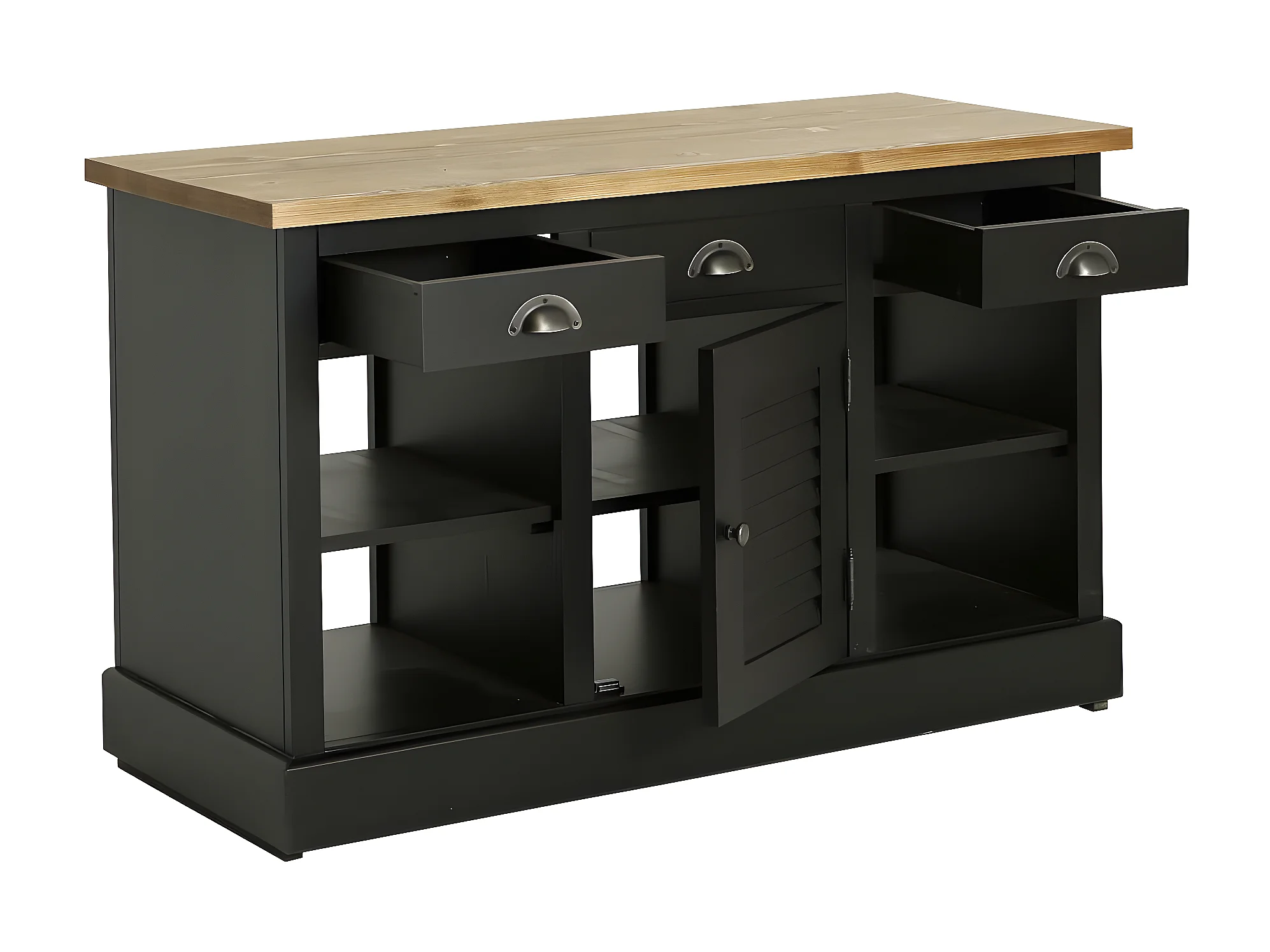 Meuble sous vasque en pin massif noir 120 cm Manel