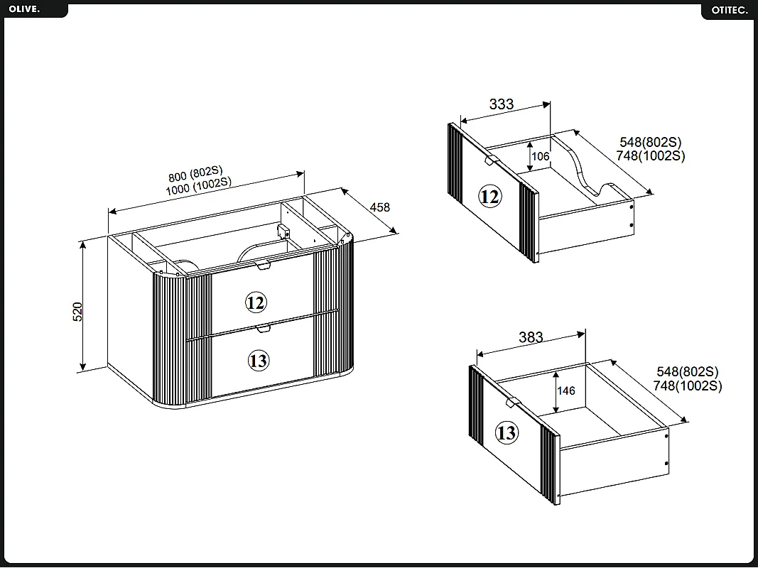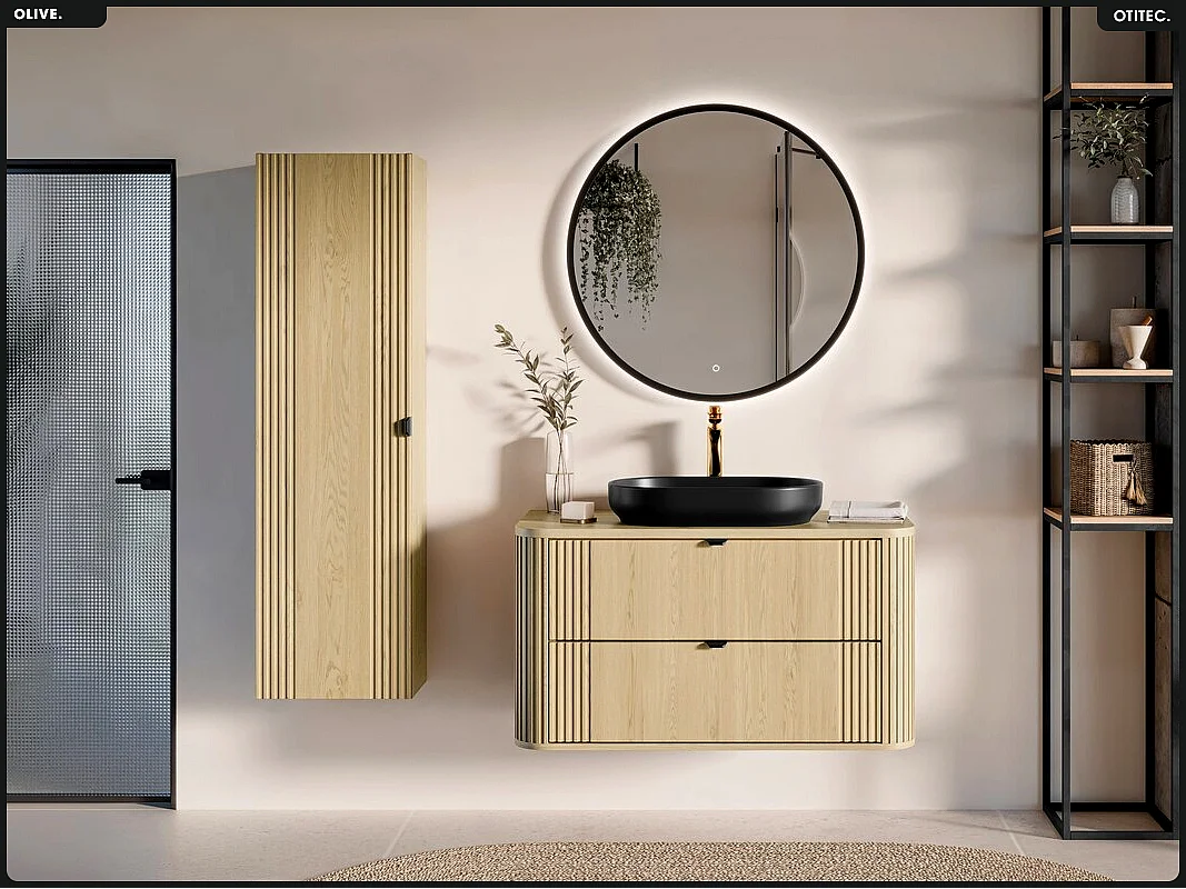 Meuble sous vasque - H.52 x L.100 x P.45 - OLIVE - Chêne