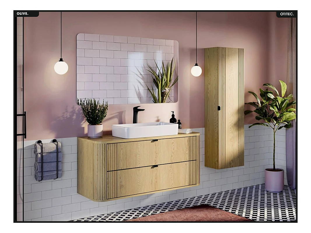 Meuble sous vasque - H.52 x L.120 x P.45 - OLIVE - Chêne