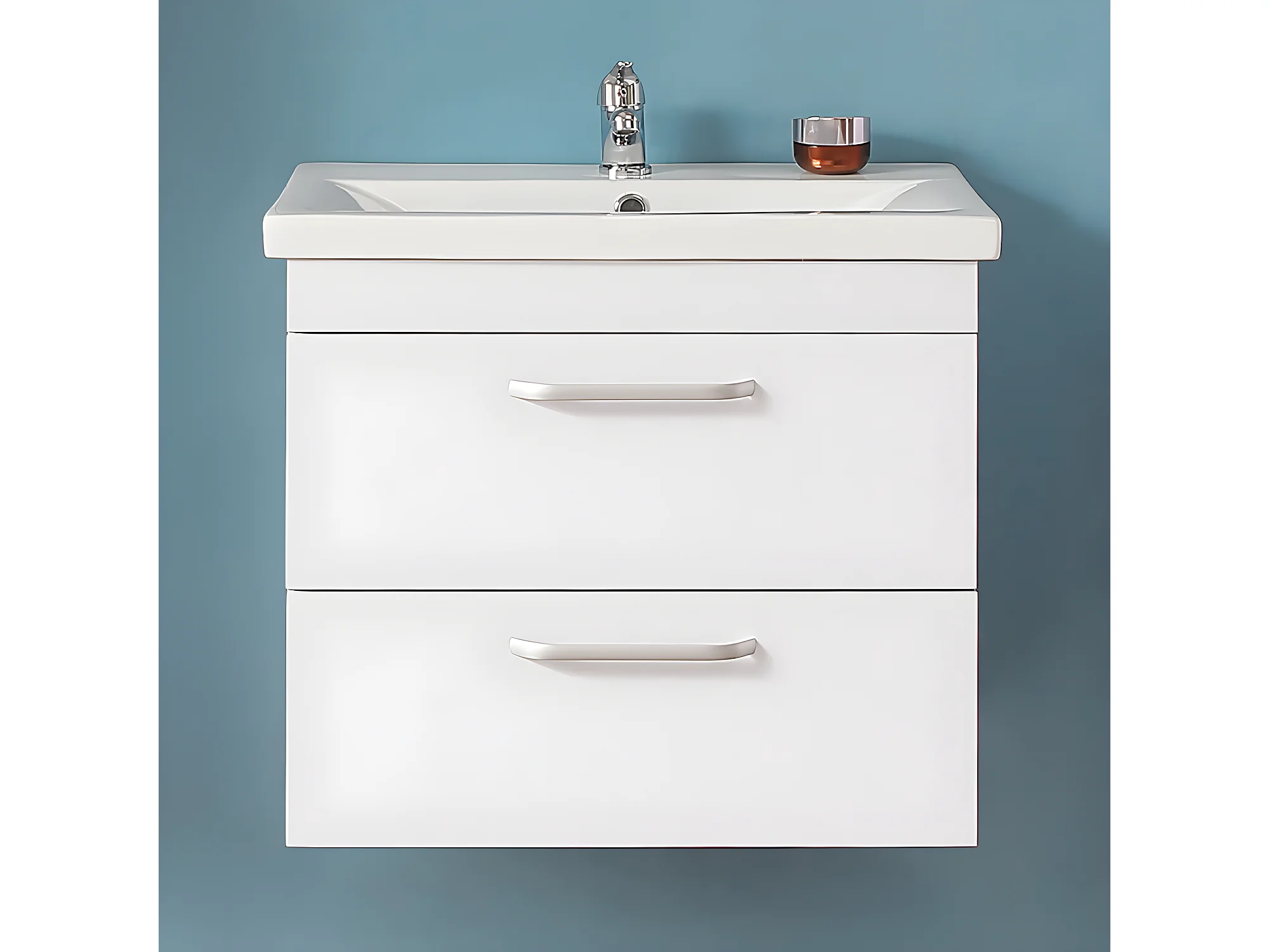 Meuble sous vasque meuble lave-mains à suspendre avec lavabo blanc avec 2 tiroirs 60cm